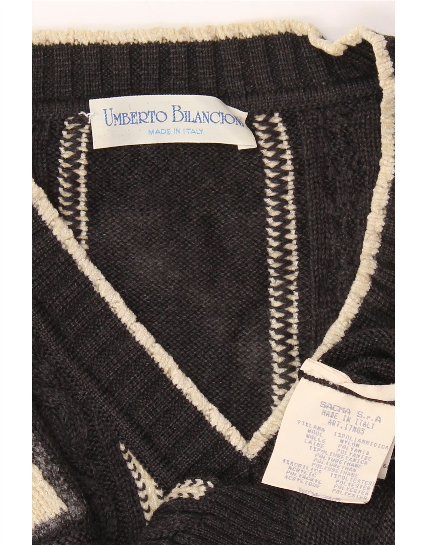 UMBERTO BILANCIONI Maglione da uomo con scollo a V 2XL Lana geometrica grigia