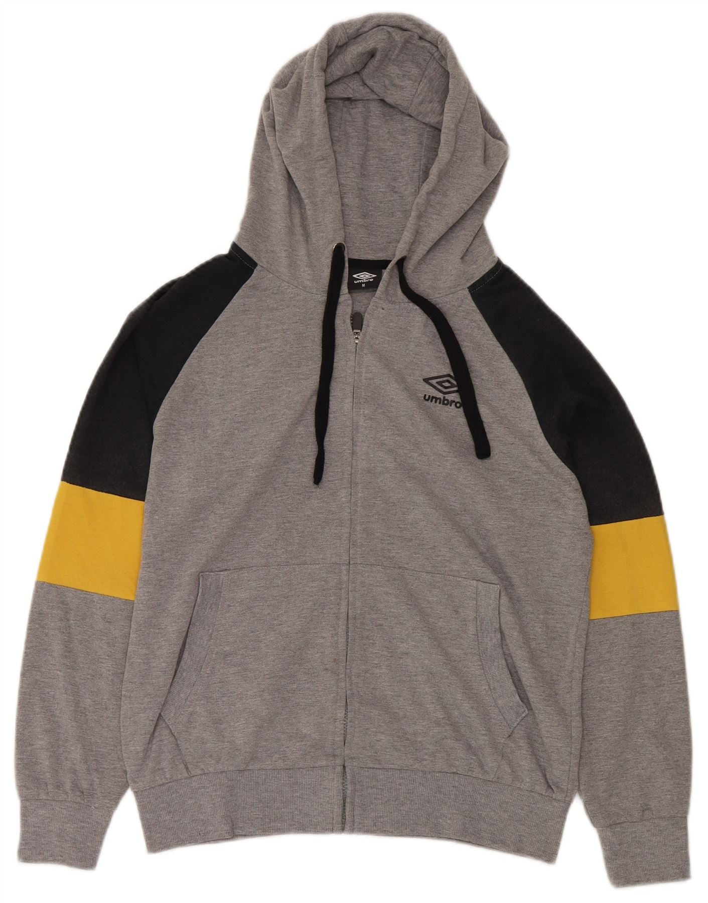UMBRO Maglione con cappuccio e zip da uomo in cotone color block grigio medio