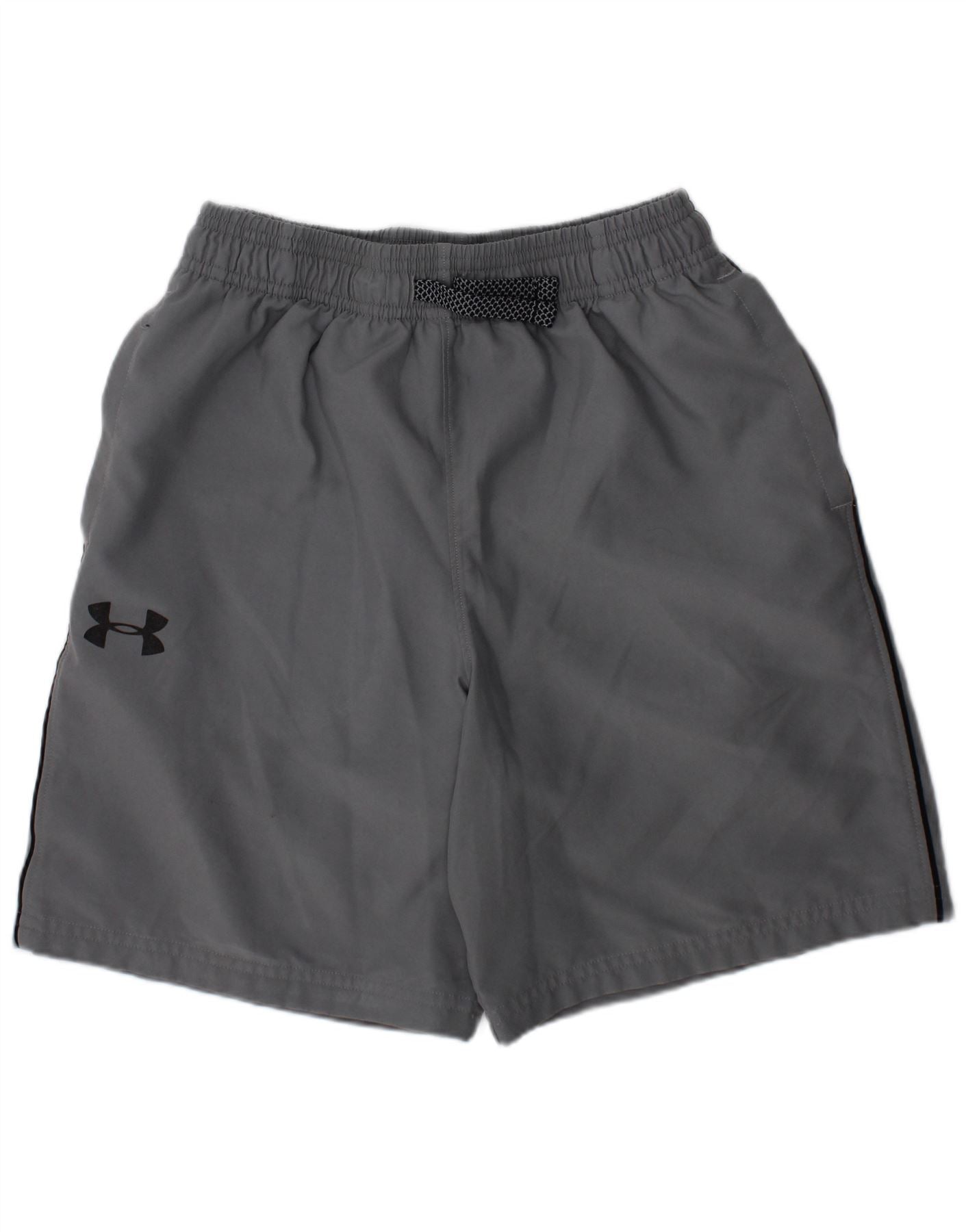 - Descrizione dell'IA: Questi pantaloncini da ragazzo Under Armour sono realizzati in tessuto grigio, che offre una sensazione traspirante. Una cintura elasticizzata con chiusura a coulisse garantisce una vestibilità sicura e confortevole. La vestibilità regolare offre facilità di movimento per un abbigliamento attivo. Sono incluse pratiche tasche laterali. Un prominente logo Under Armour è presente sulla gamba, migliorando lo stile atletico.