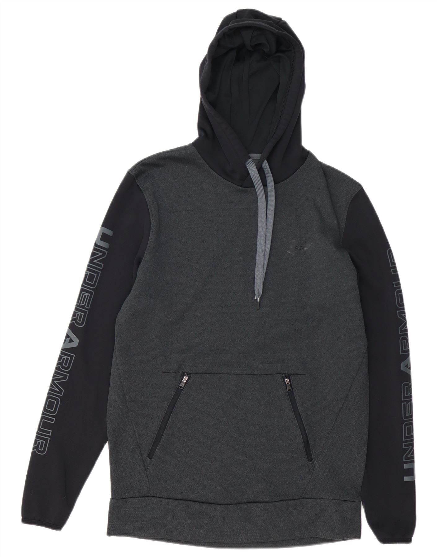 UNDER ARMOUR Maglione con cappuccio grafico Cold Gear da uomo piccolo grigio a blocchi di colore