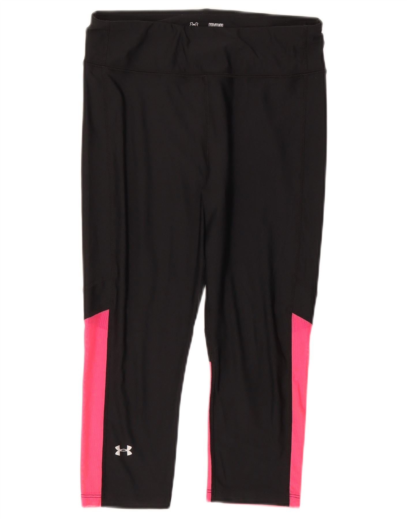 UNDER ARMOUR Womens Heat Gear Leggings UK 12 Medium Black Colourblock