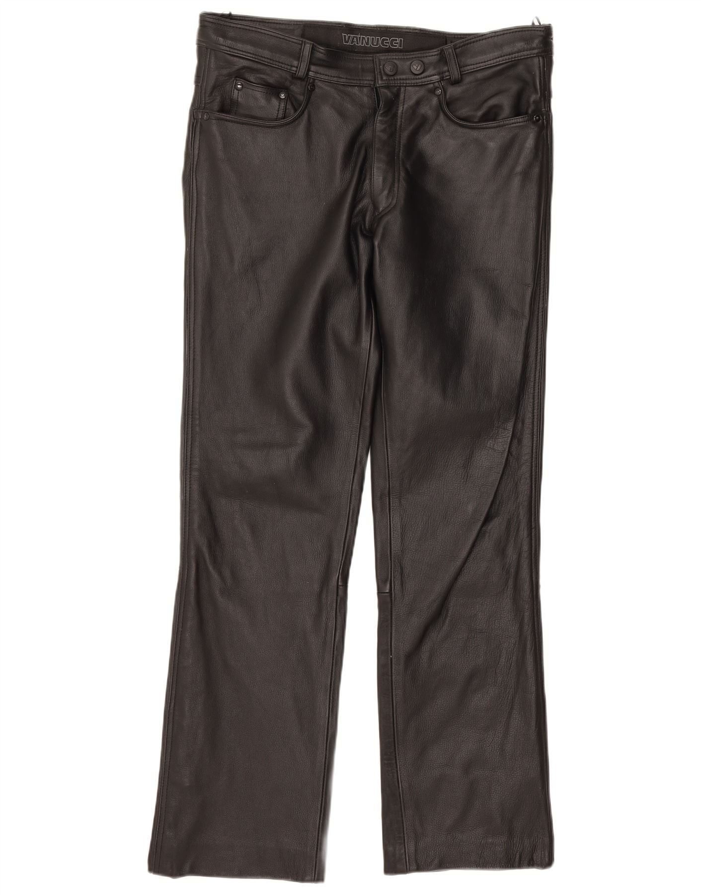 Pantaloni casual dritti da uomo Vanucci IT 50 Large W34 L31 Pelle nera