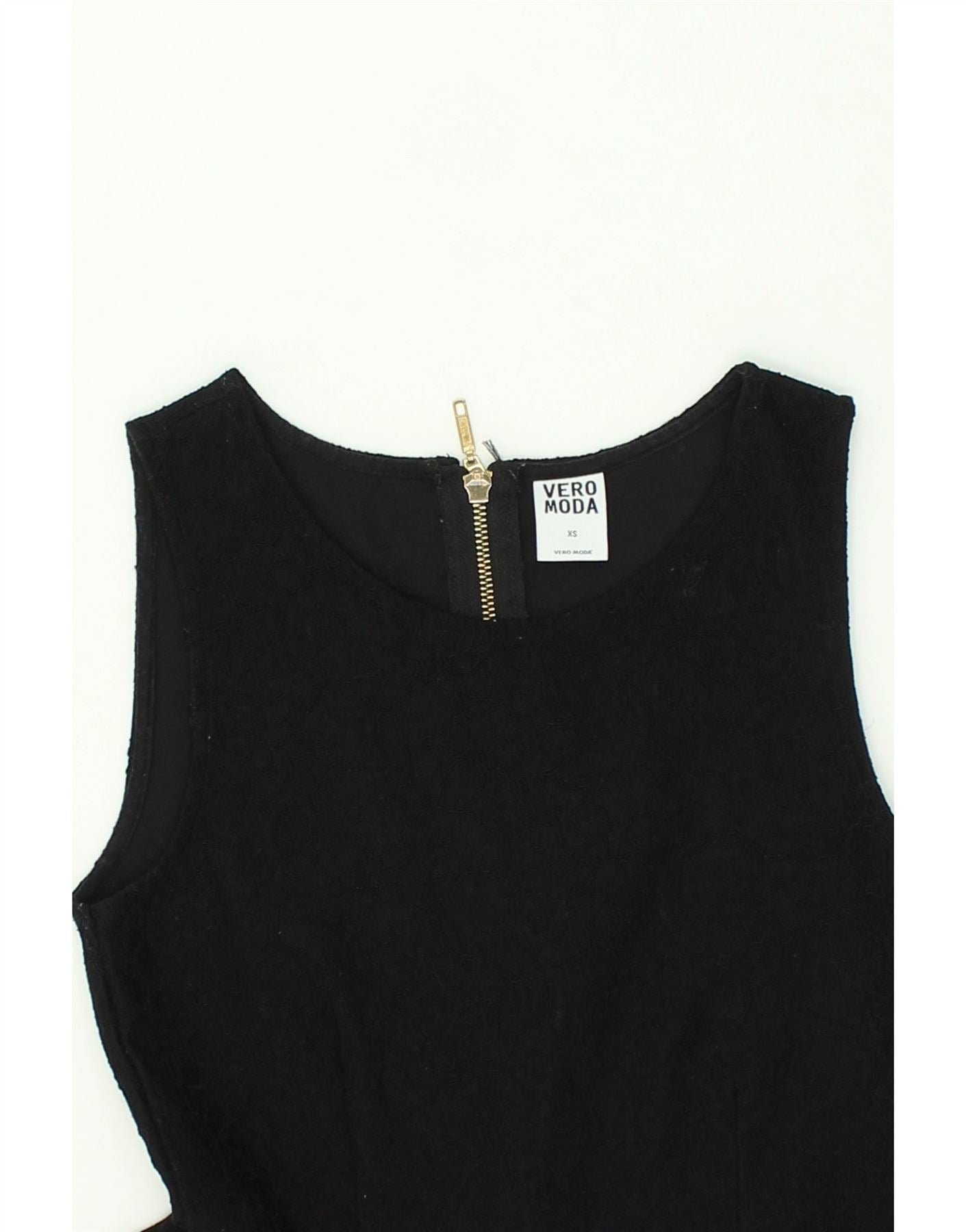 VERO MODA Womens Sleeveless Blouse Top UK 6 XS Black Floral Polyester
