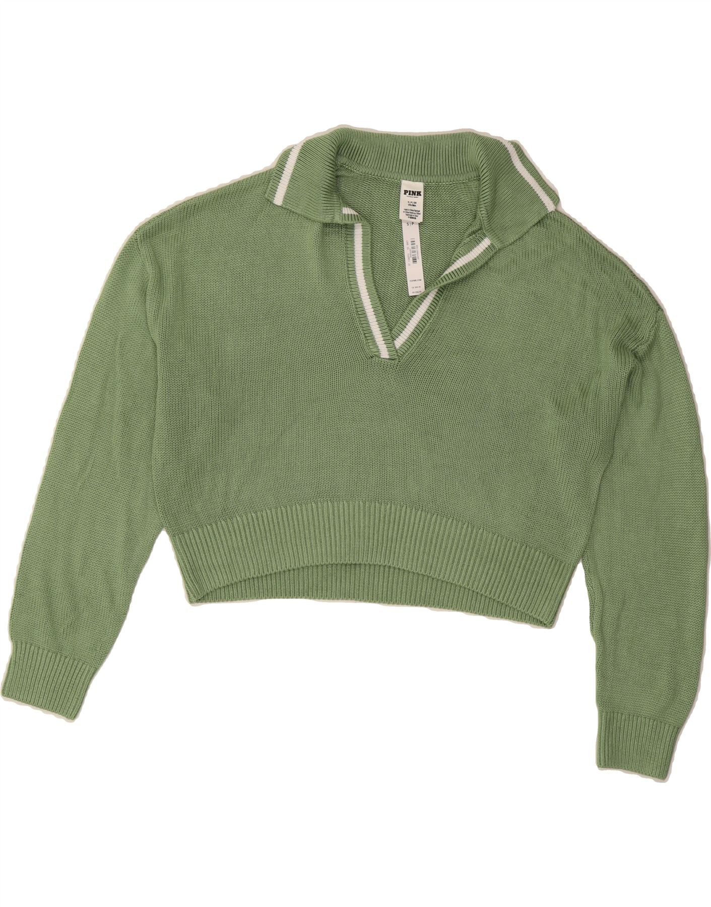 VICTORIAS SECRET Womens Polo Neck Jumper Sweater UK 10 Small Green