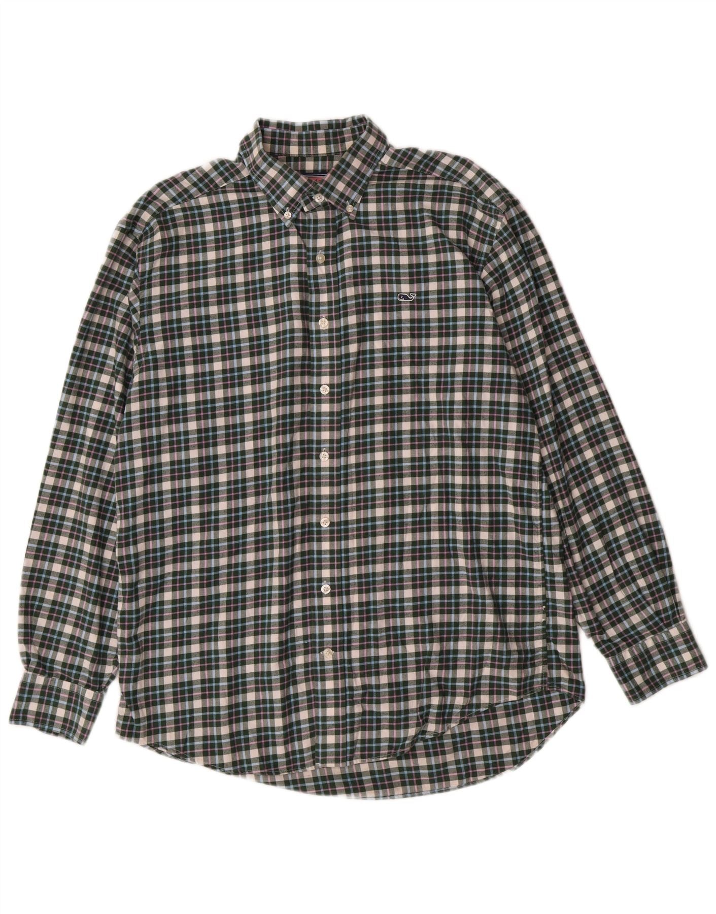 Vineyard Vines Camicia da uomo in flanella di cotone preppy a quadri verde medio