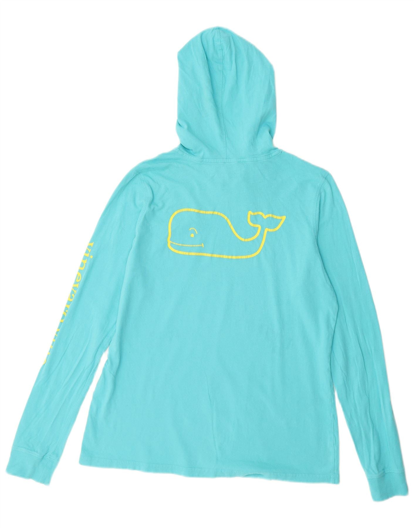 VINEYARD VINES Top grafico da donna con cappuccio manica lunga UK 10 piccolo blu