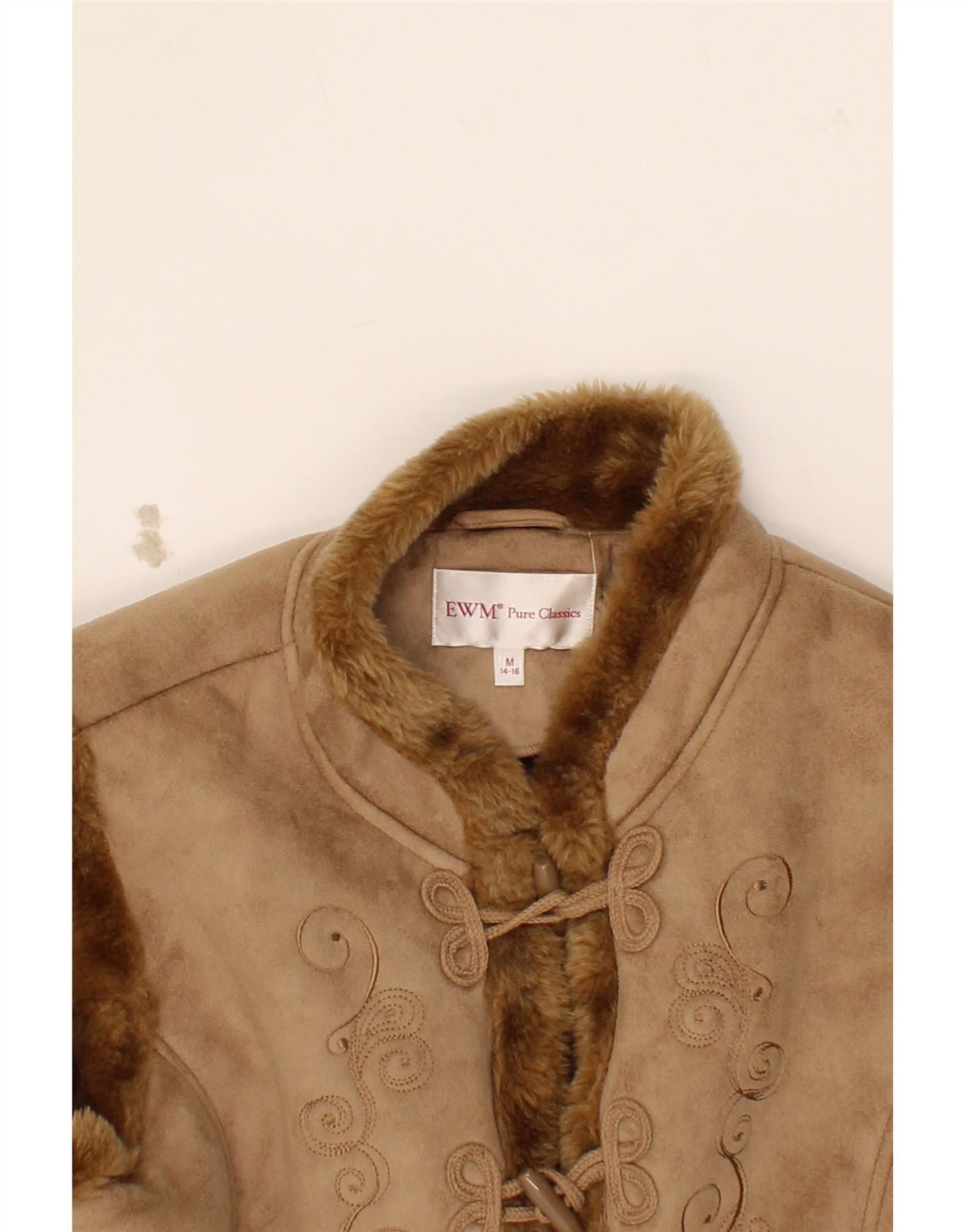 VINTAGE Girls Sherpa Gilet 14-15 Years Medium Brown Colourblock Polyester