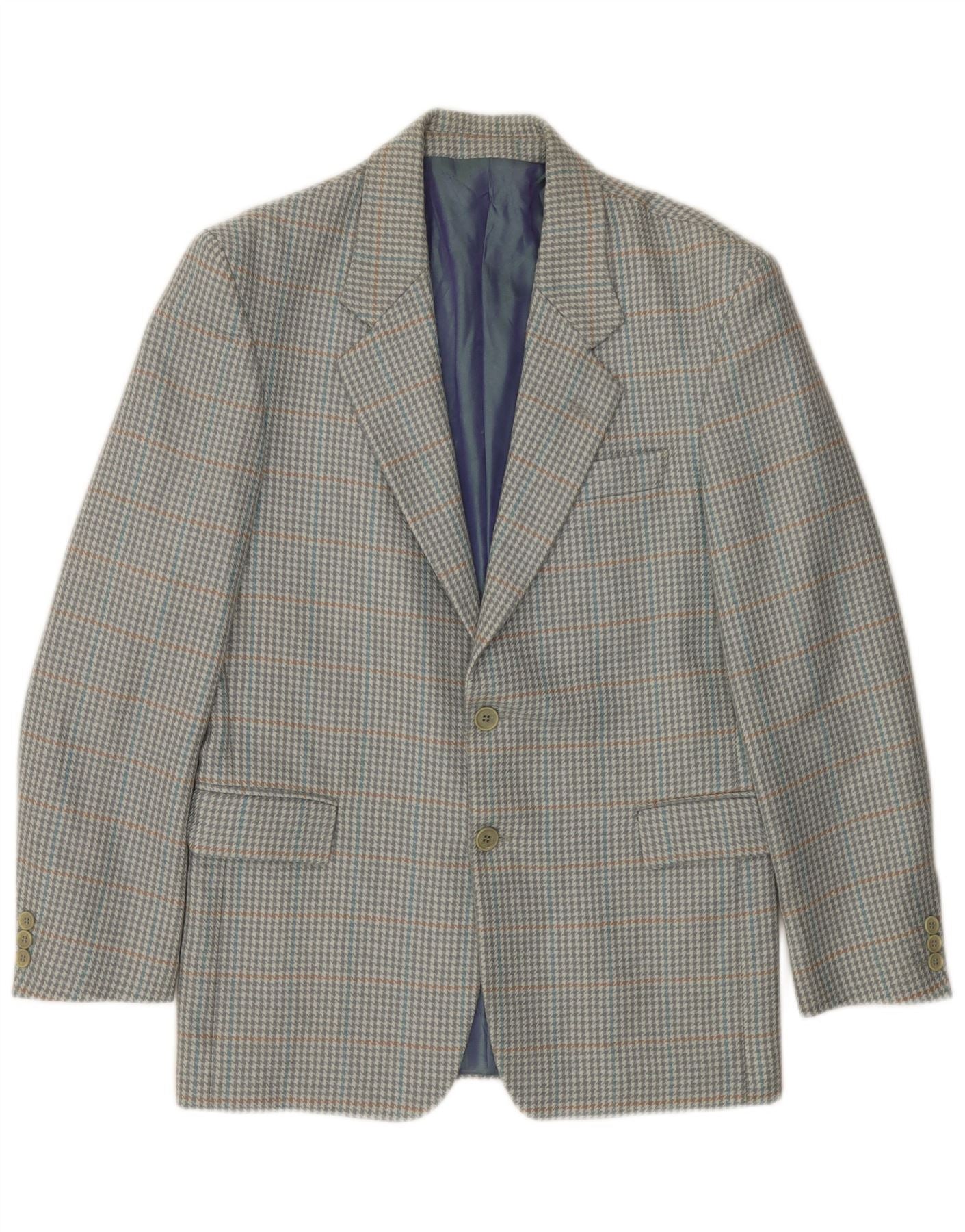 Giacca blazer da uomo a 2 bottoni VINTAGE IT 46 piccolo grigio pied de poule in lana vergine