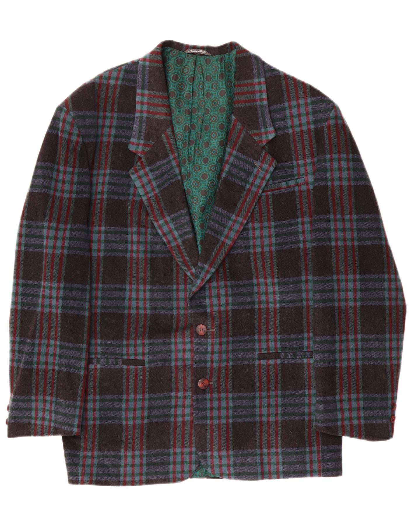 Giacca blazer vintage da uomo a 2 bottoni IT 48 lana media a quadri blu navy