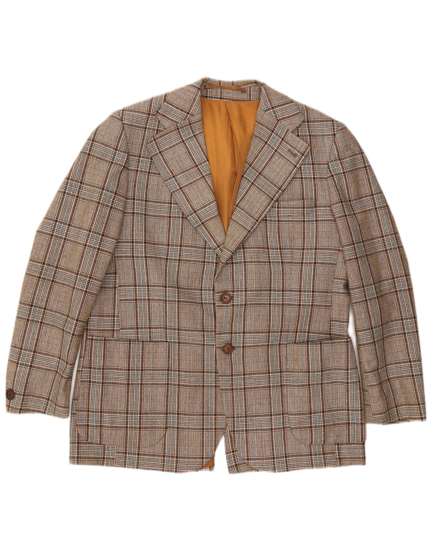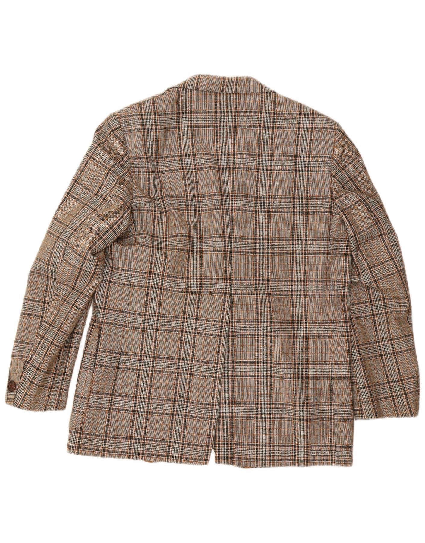 Giacca blazer da uomo a 2 bottoni VINTAGE UK 40 grande poliestere a quadri grigi