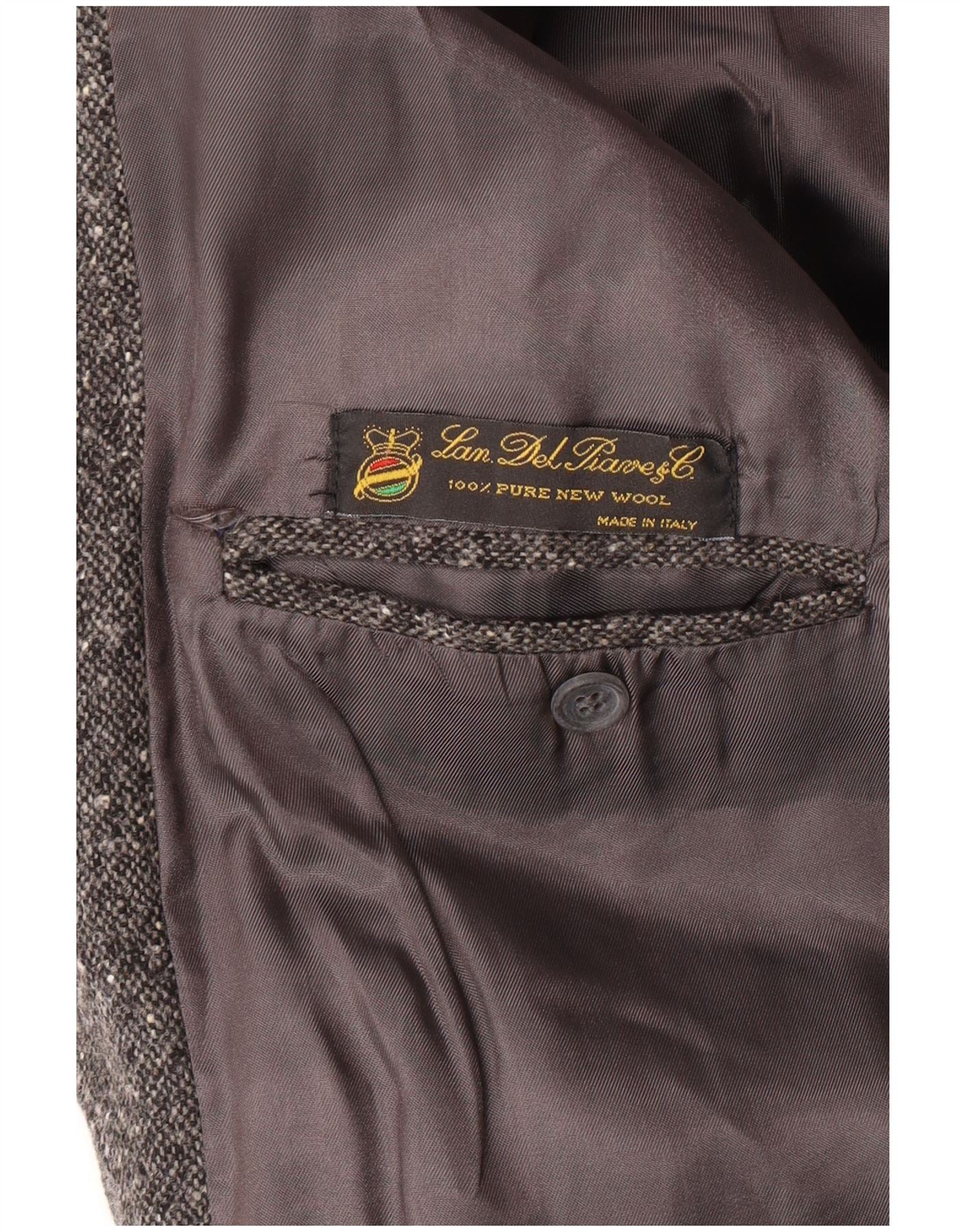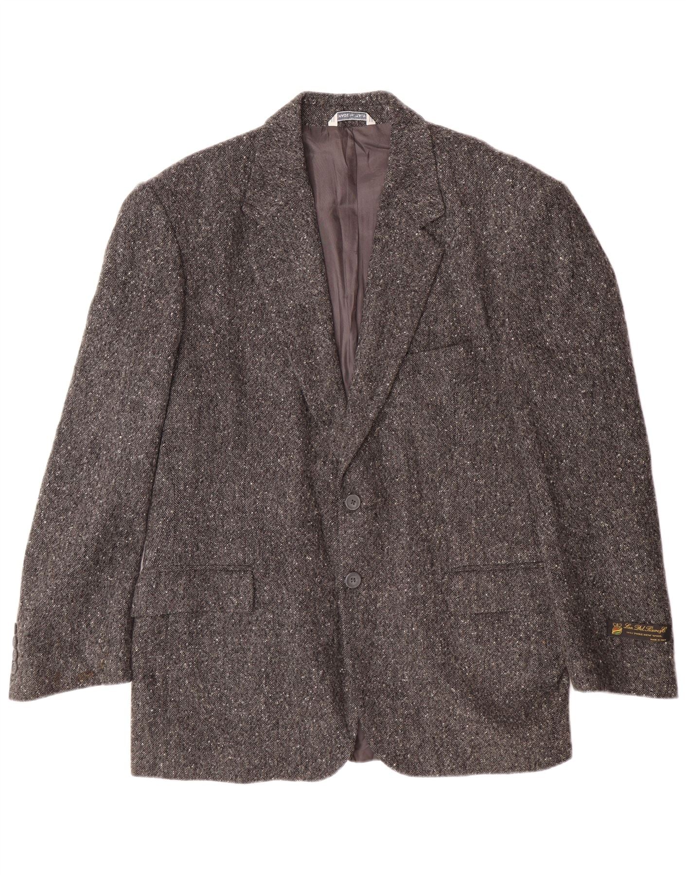 Giacca blazer da uomo a 2 bottoni VINTAGE UK 40 grande lana vergine chiazzata grigia