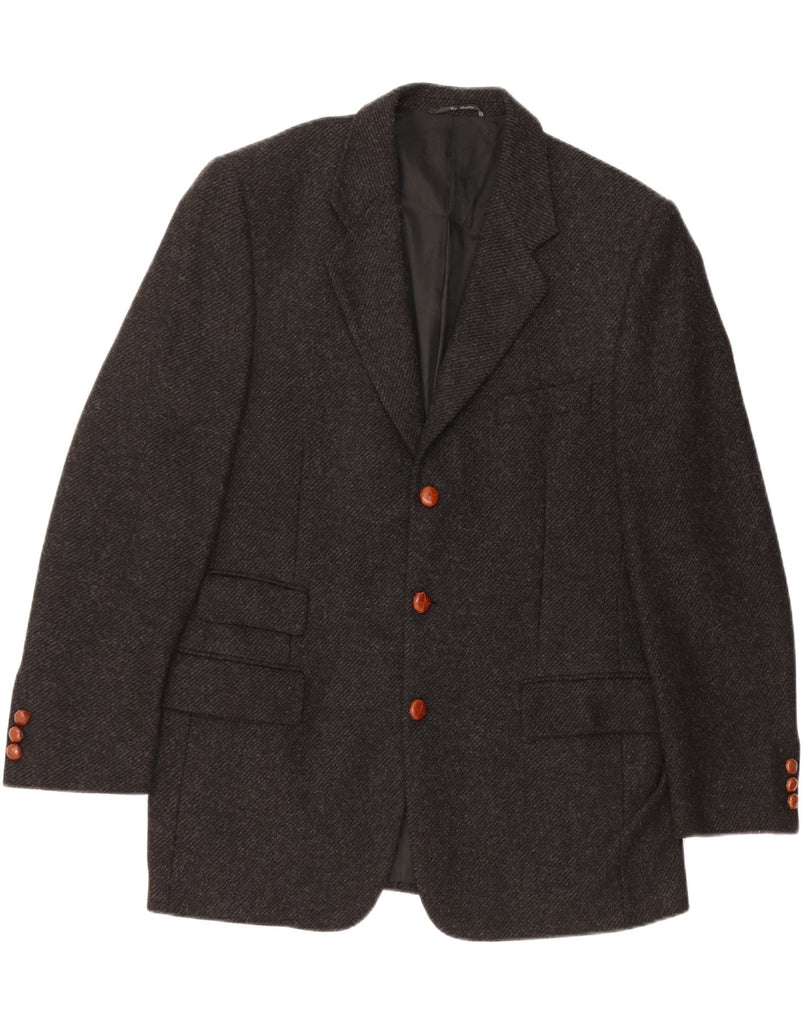 Giacca blazer da uomo a 3 bottoni VINTAGE IT 50 grande lana a spina di pesce grigia
