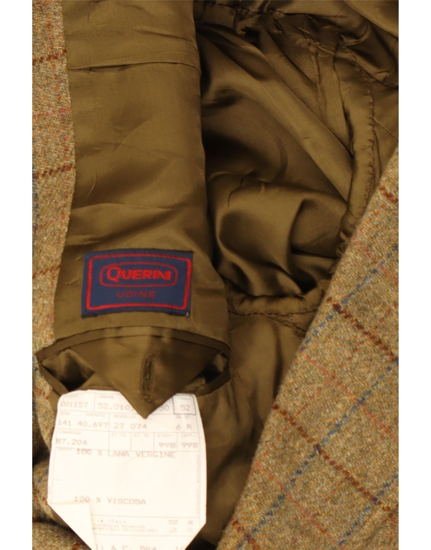 Giacca blazer da uomo a 3 bottoni VINTAGE IT 52 XL lana a quadri kaki