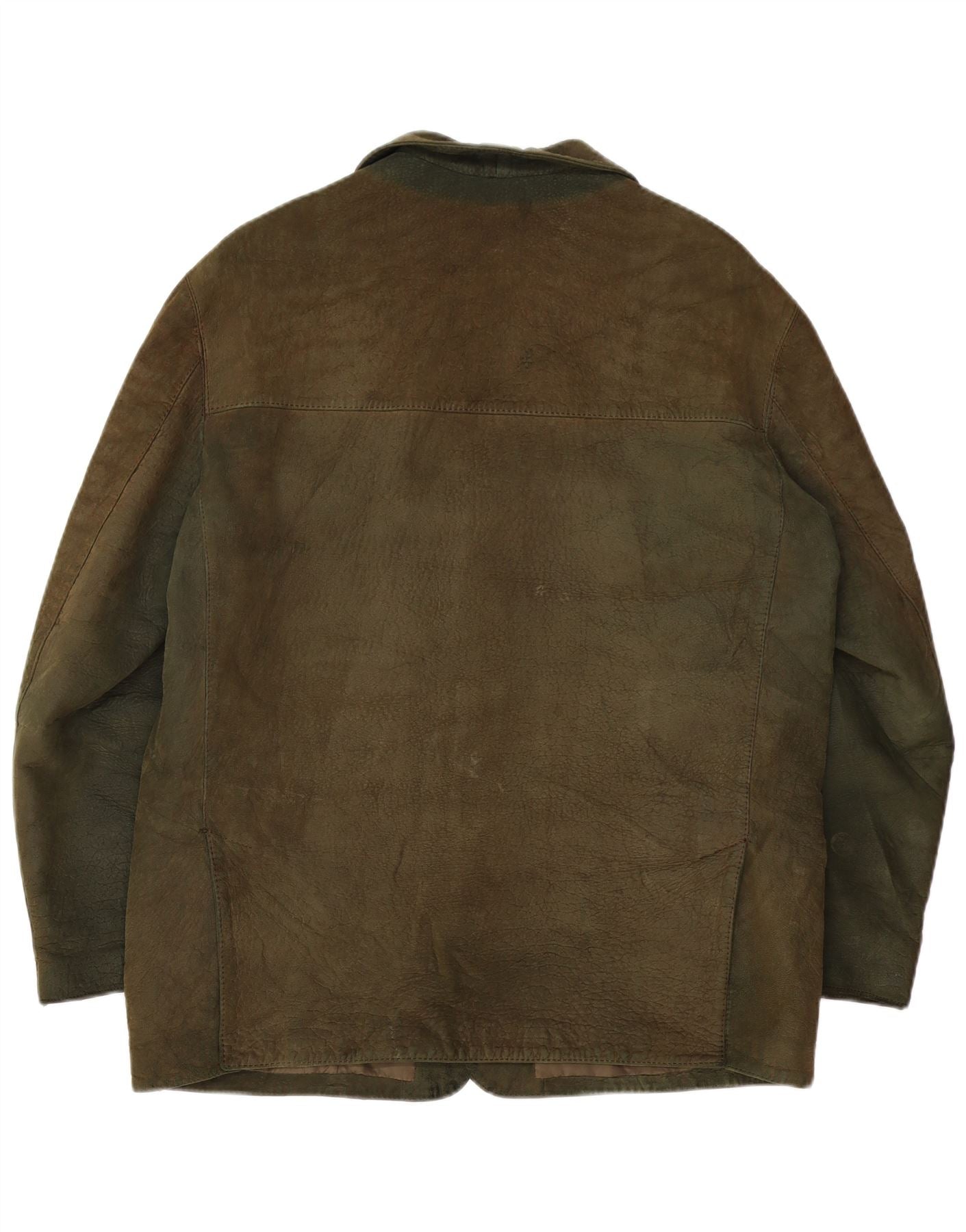 Giacca blazer in pelle vintage da uomo a 3 bottoni UK 38 medio kaki