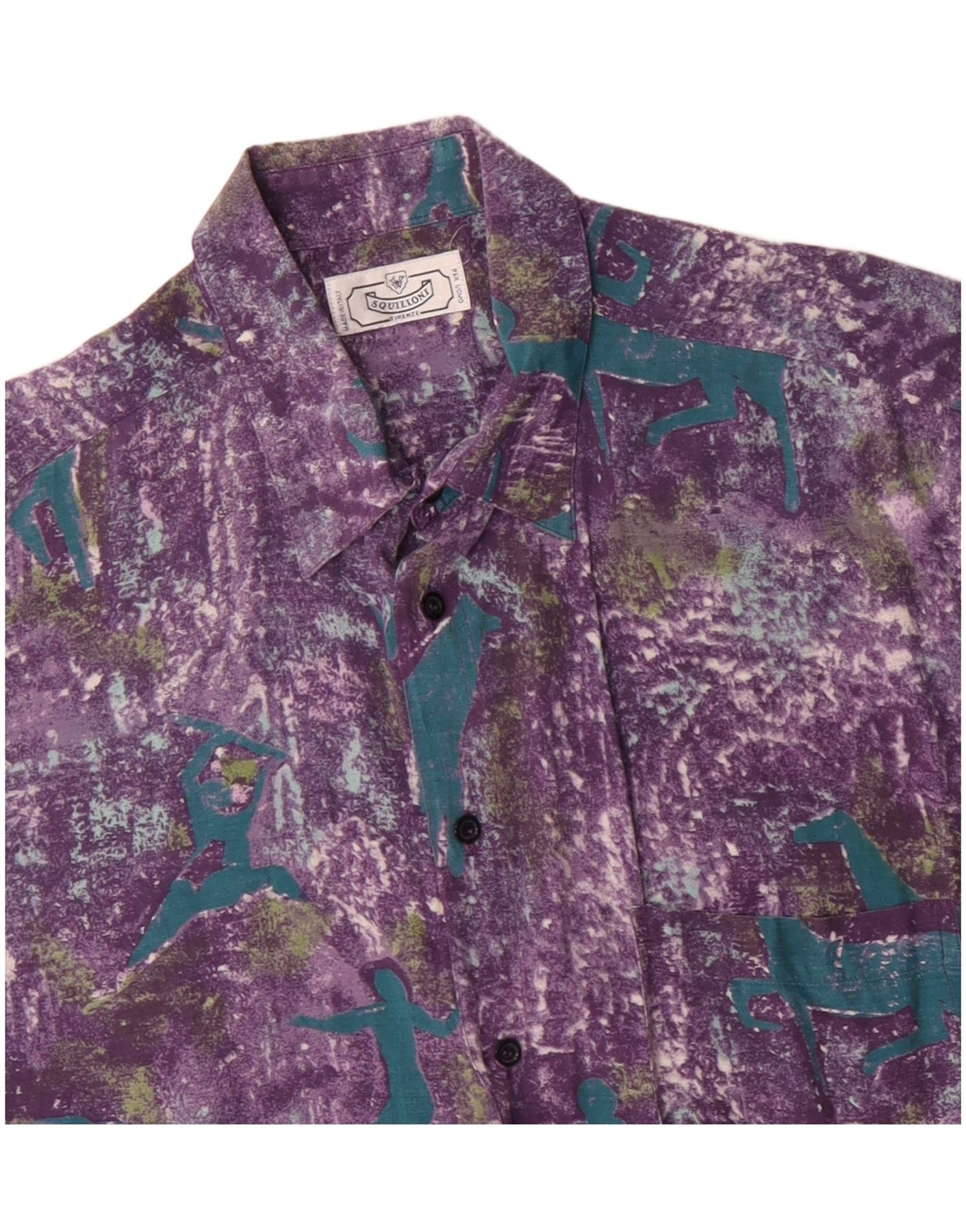 Camicia a maniche corte vintage da uomo con motivo astratto, grande in viscosa viola