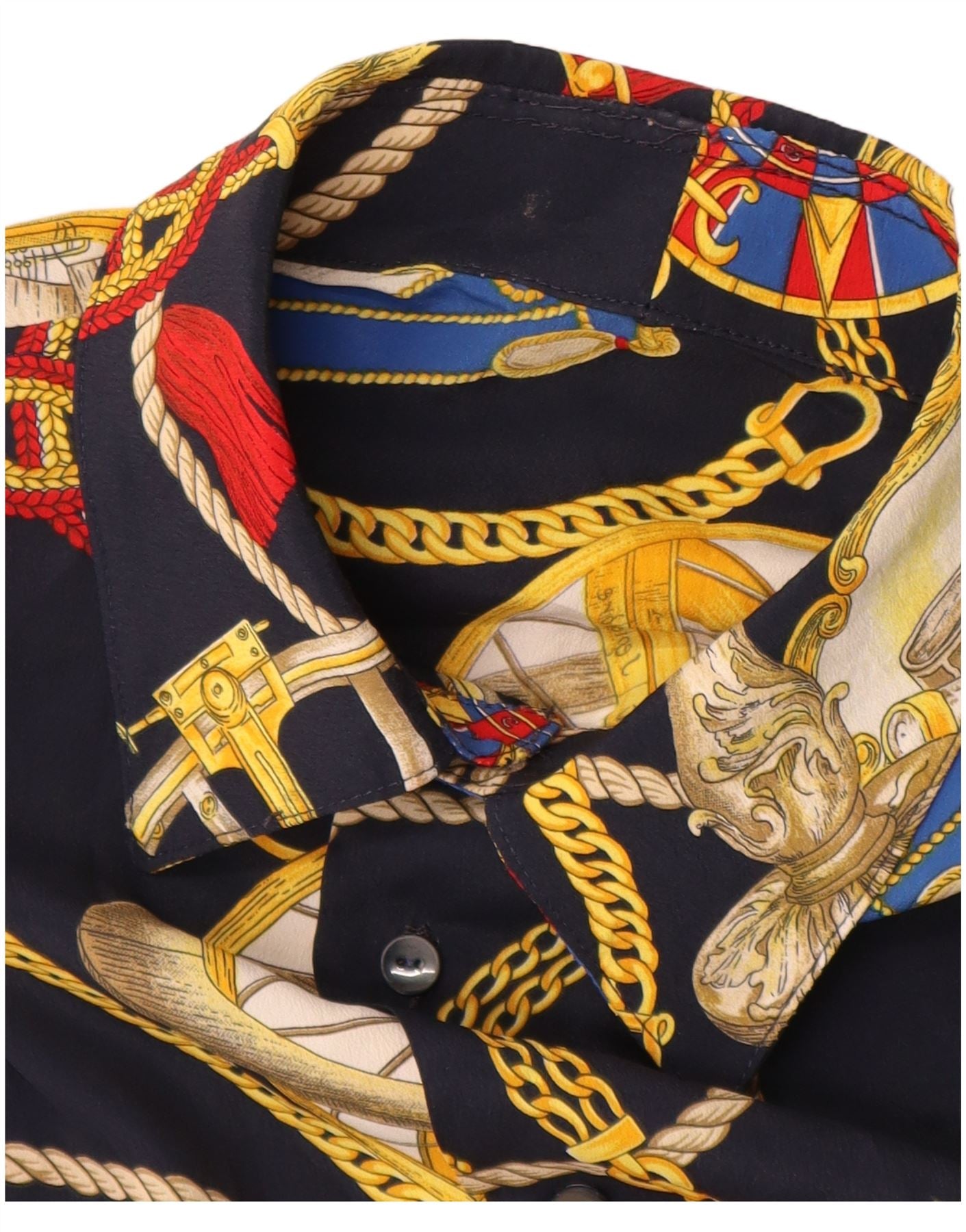Camicia a maniche corte vintage da uomo con motivo astratto blu navy medio