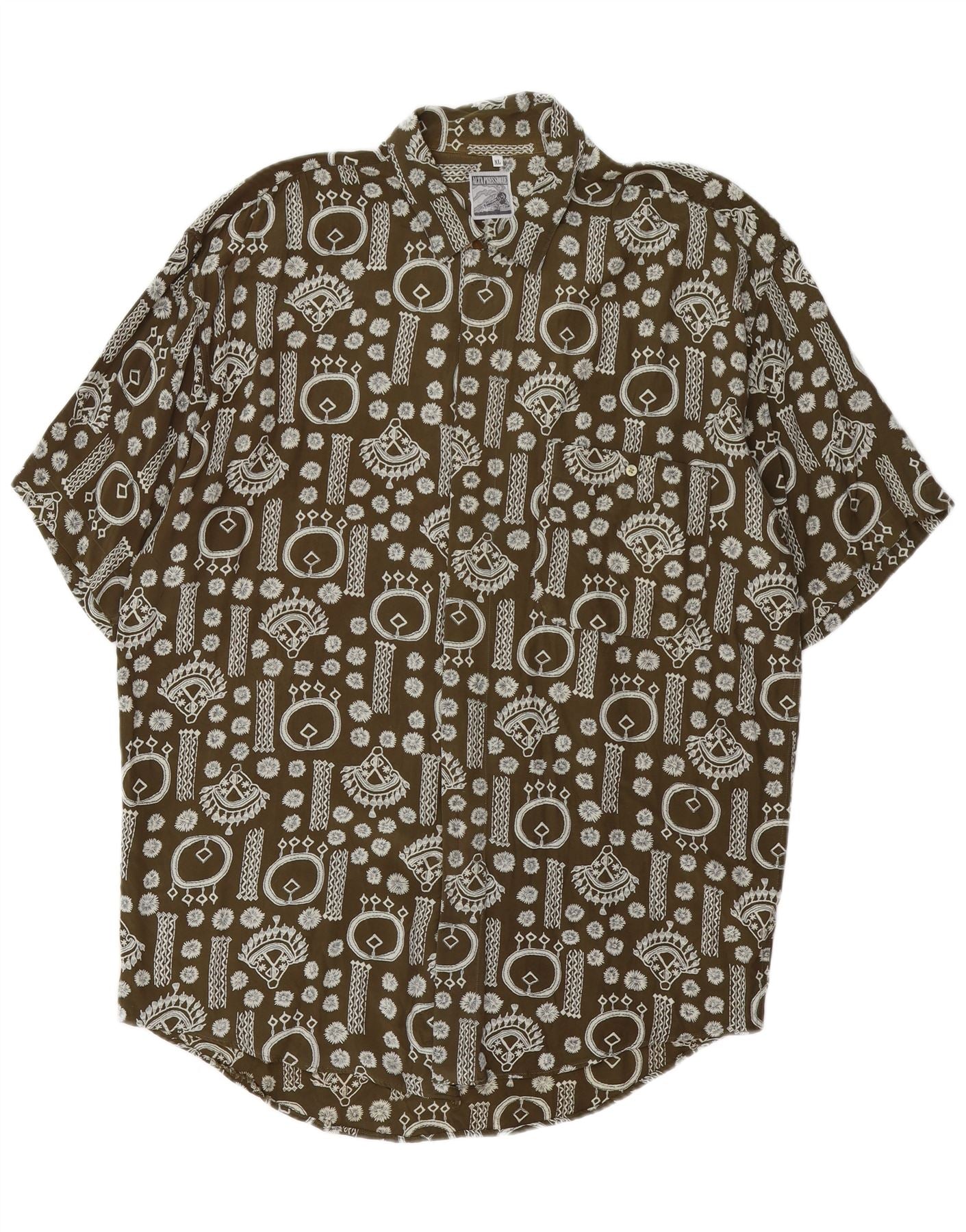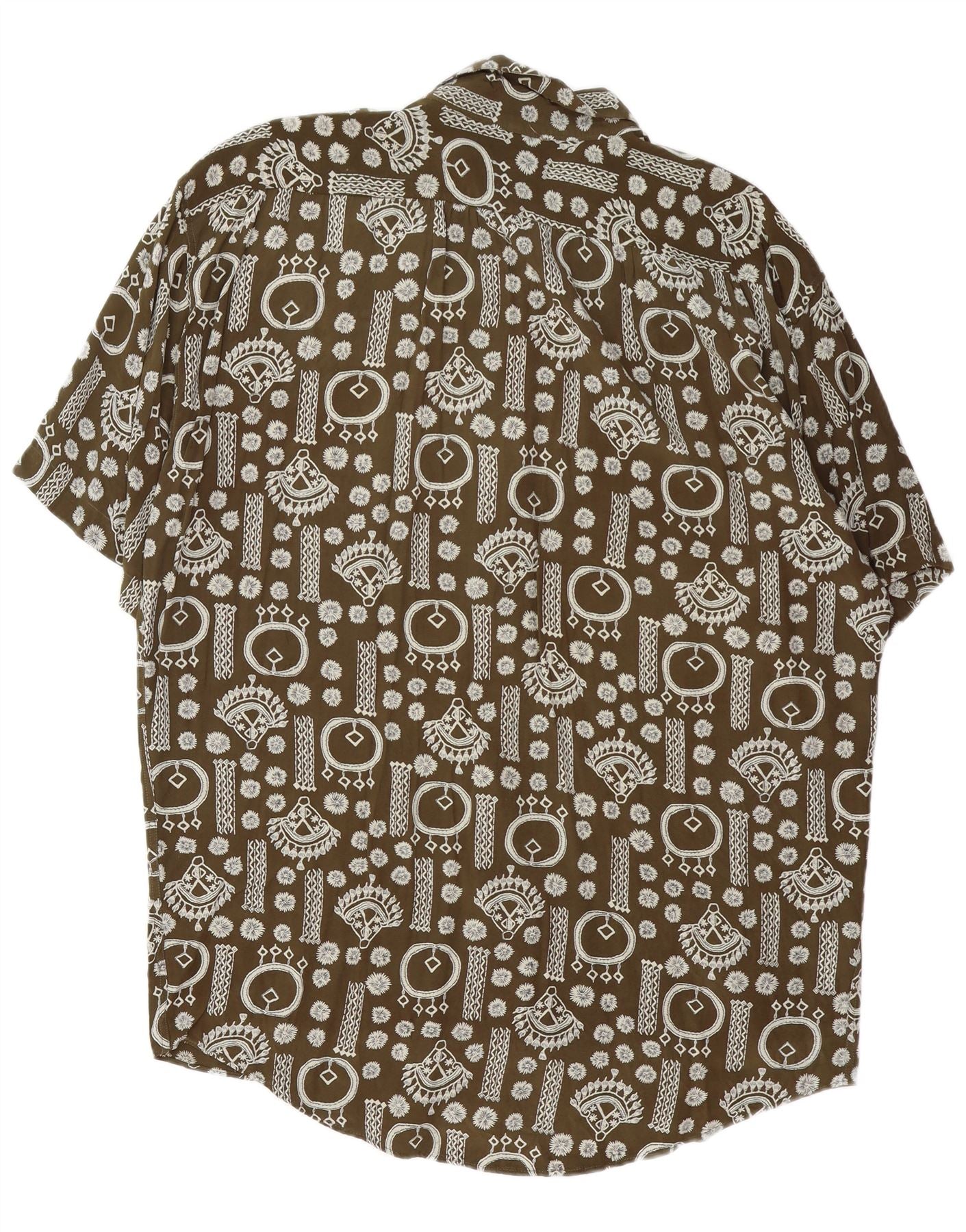 Camicia a maniche corte vintage da uomo con motivo astratto XL kaki