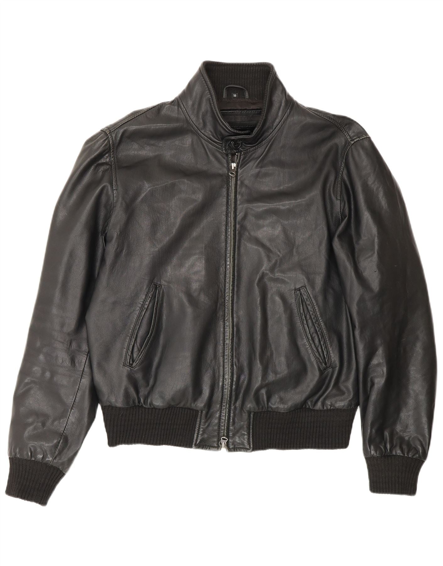 Giacca bomber in pelle da uomo vintage IT 50 grande in pelle nera