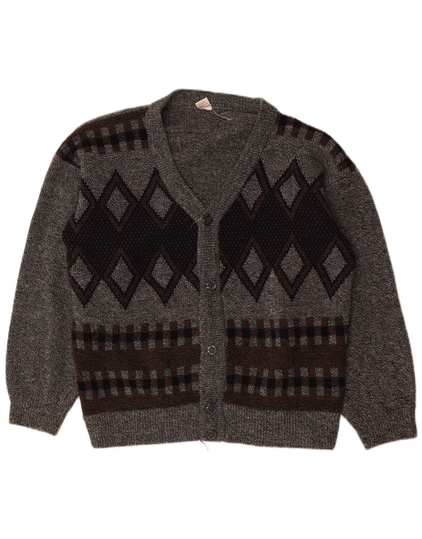 Maglione cardigan da uomo VINTAGE 2XL Grigio Argyle/Acrilico diamante
