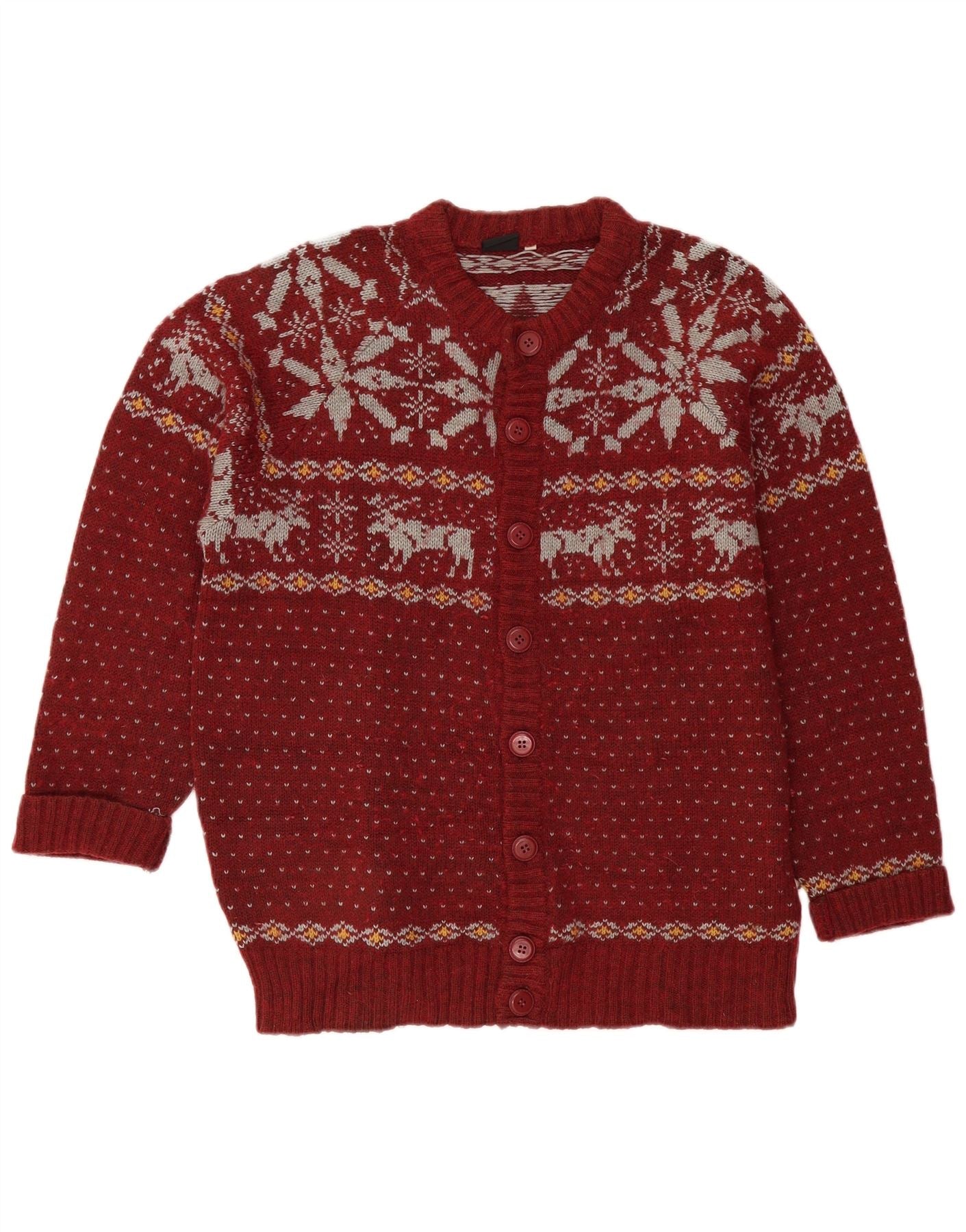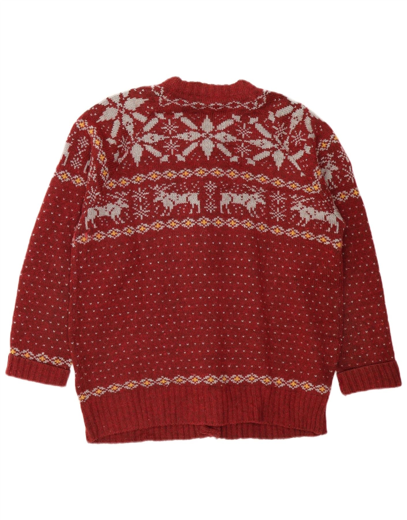 Maglione cardigan da uomo VINTAGE grande lana Fair Isle bordeaux
