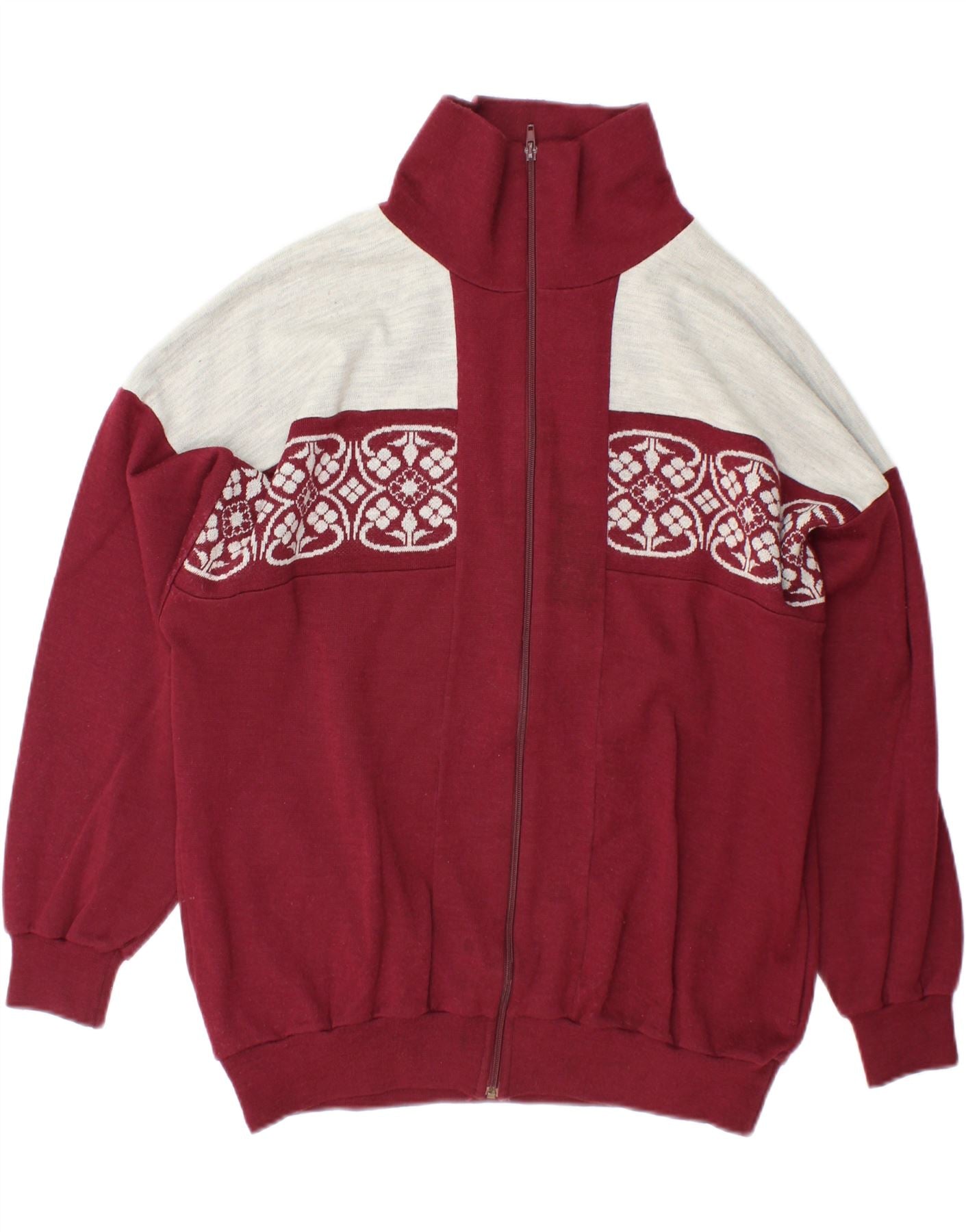 Maglione cardigan da uomo VINTAGE grande acrilico geometrico bordeaux