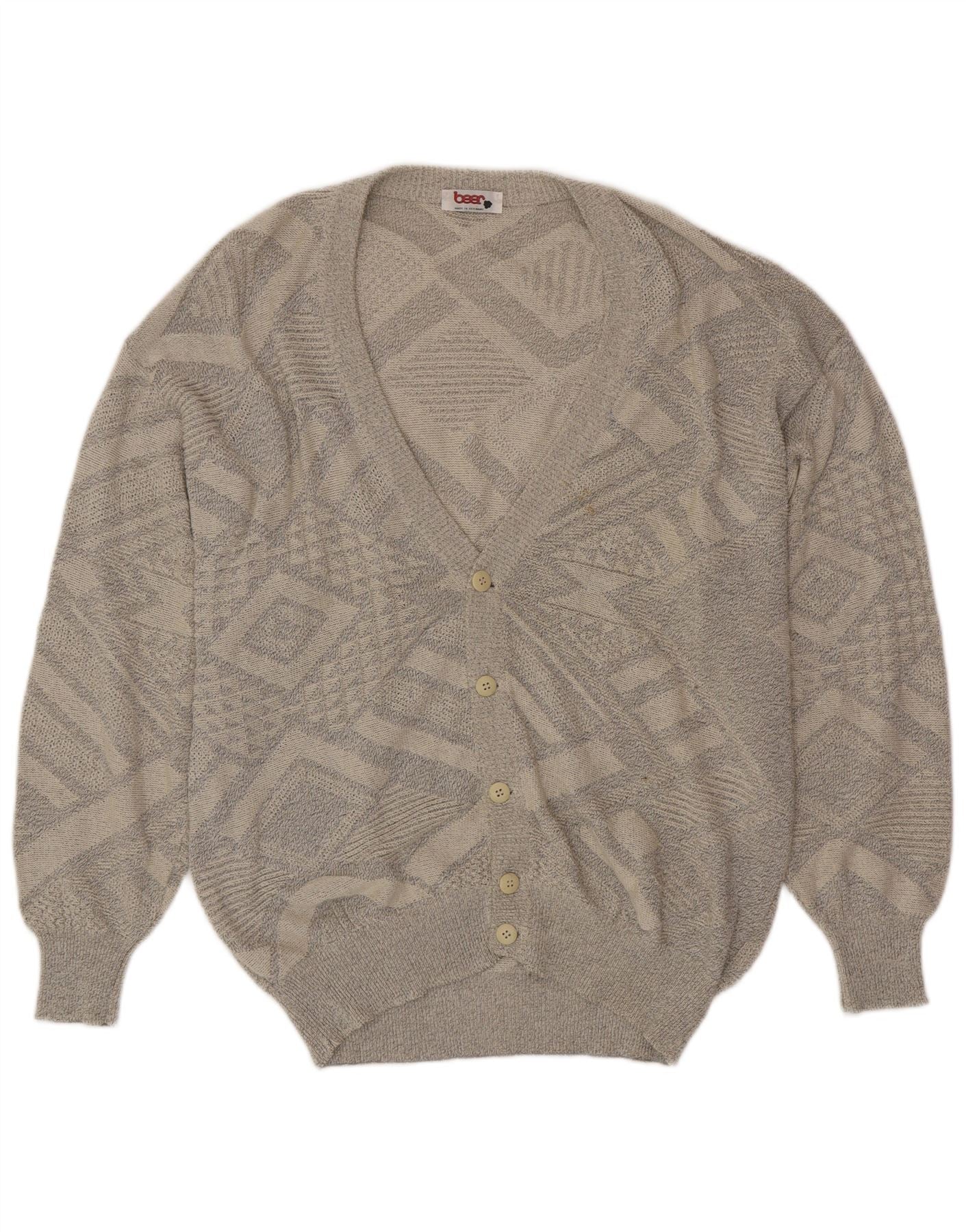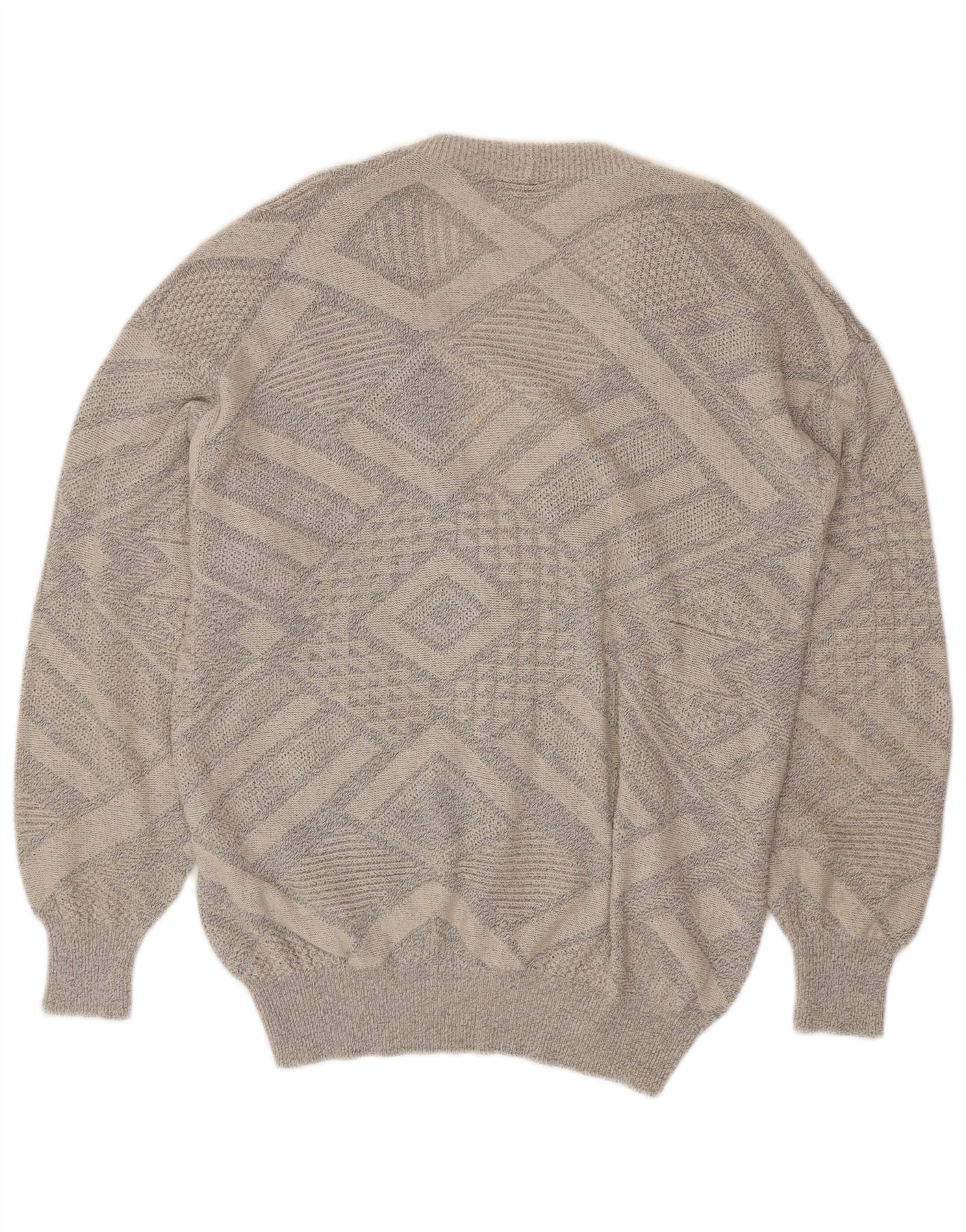 Maglione cardigan da uomo VINTAGE grande cotone geometrico grigio