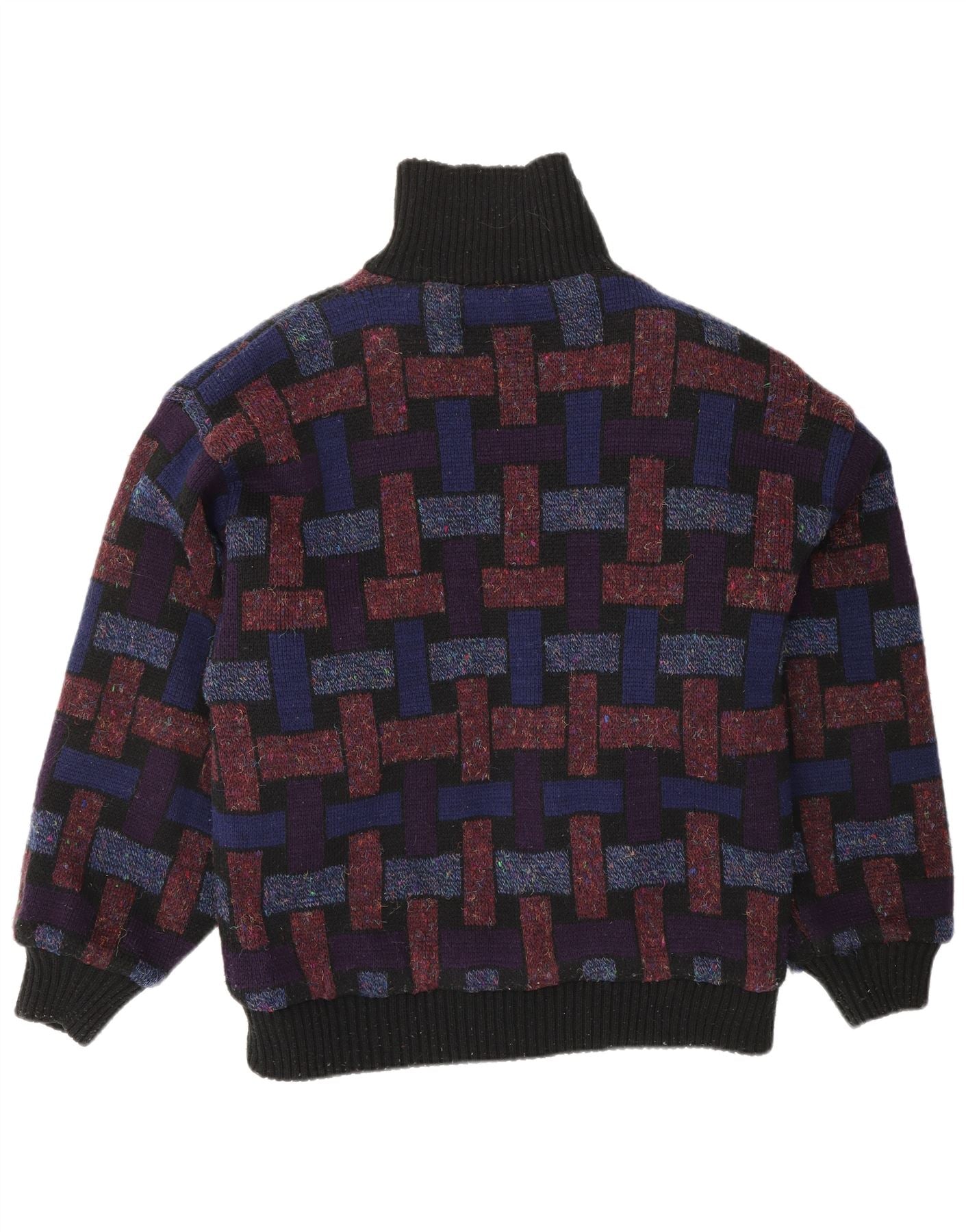 Maglione cardigan da uomo VINTAGE grande geometrico multicolore
