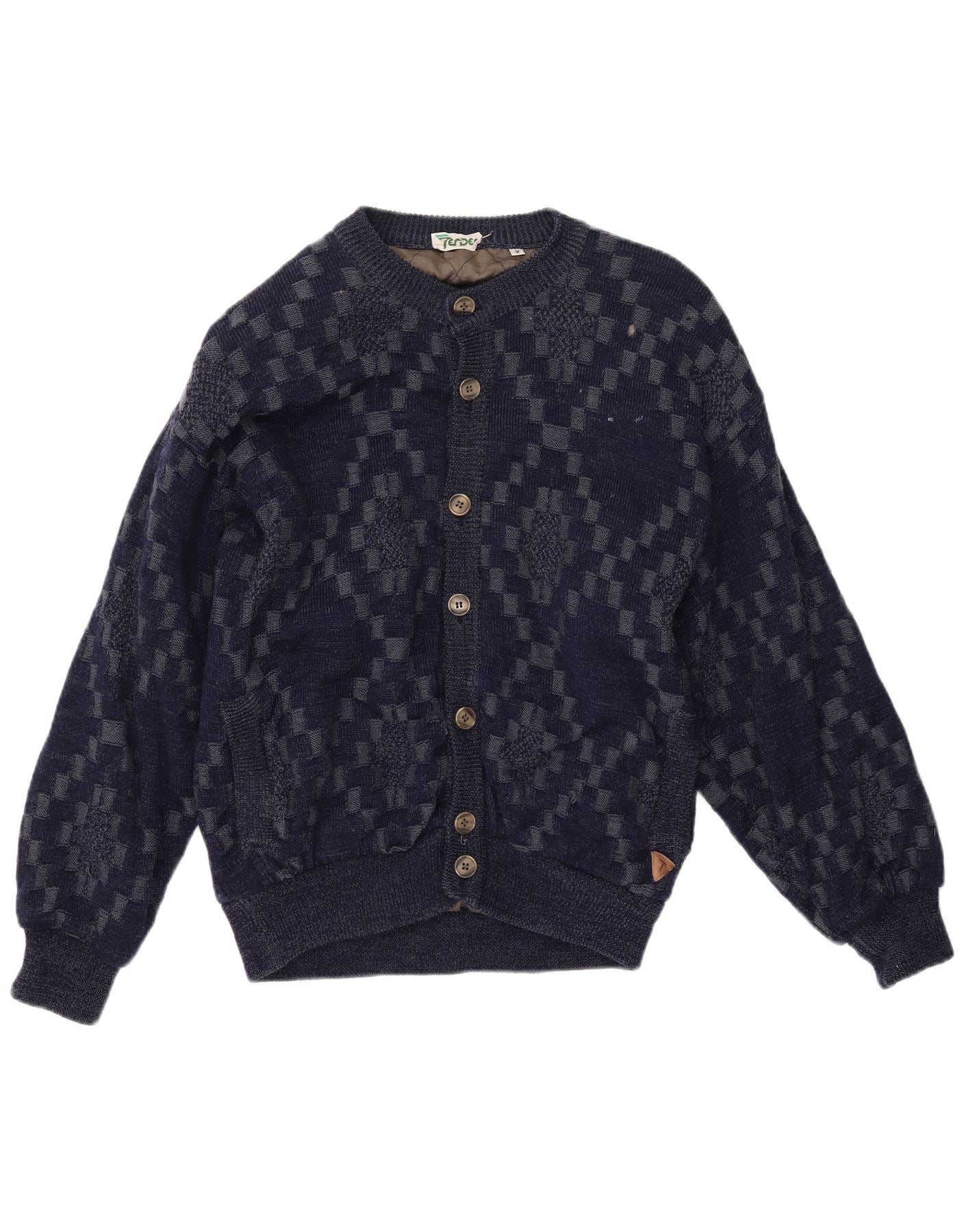 VINTAGE Womens Sleeveless Cardigan Sweater UK 16 Large Blue Patchwork