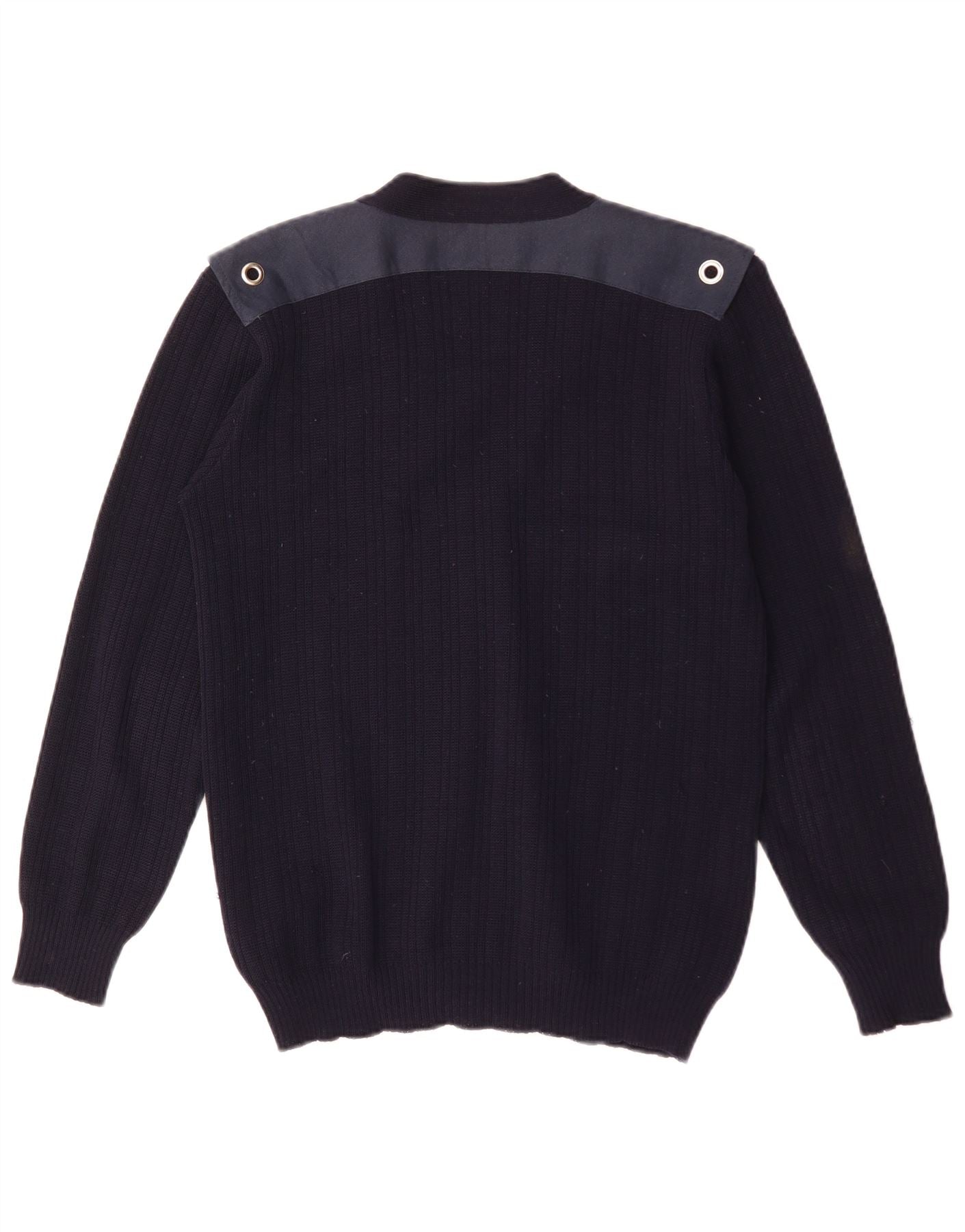 Maglione cardigan da uomo vintage in lana color block medio blu navy