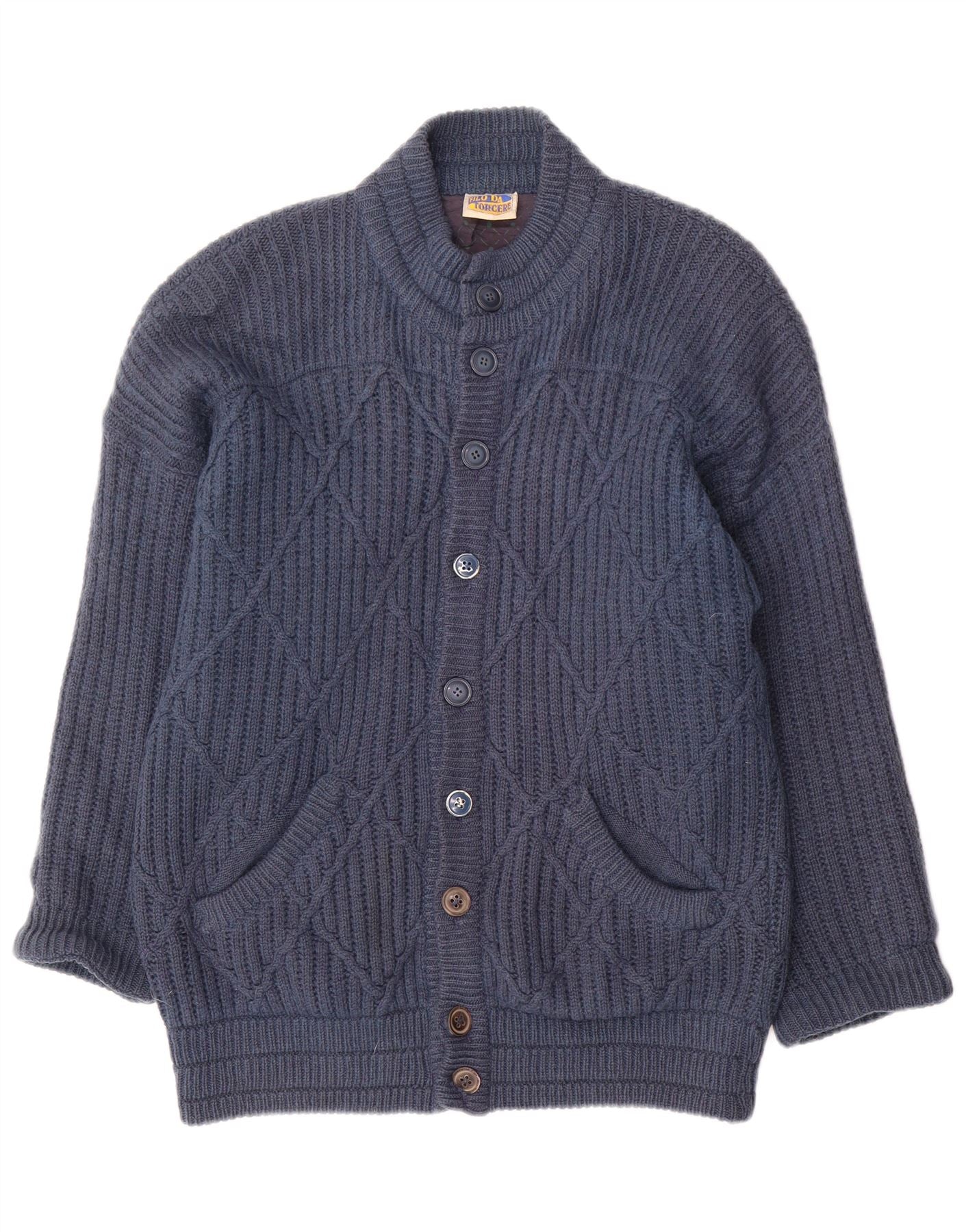 Maglione cardigan da uomo VINTAGE lana media blu navy