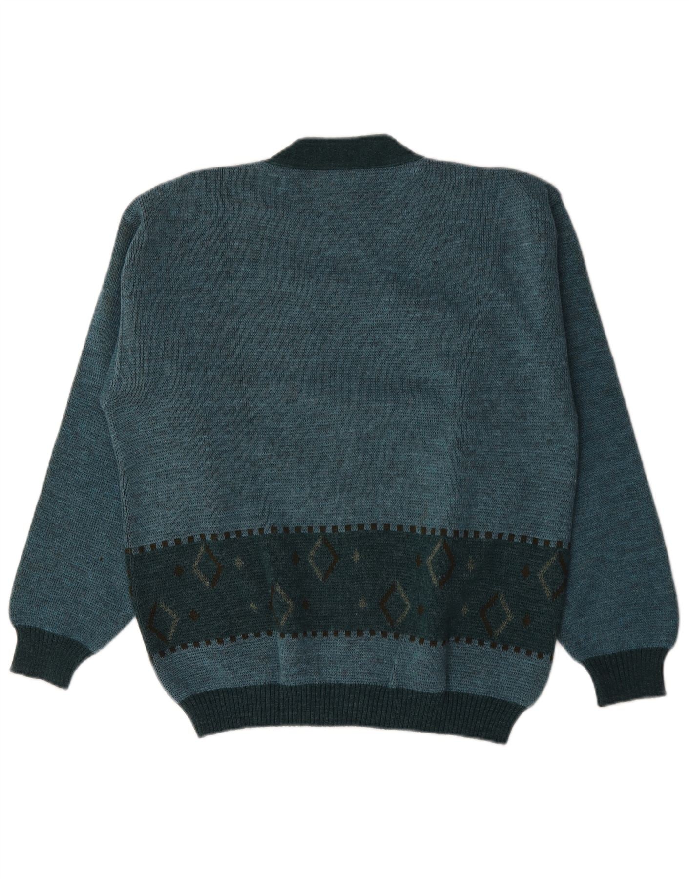 Maglione cardigan da uomo vintage in lana a rombi/diamanti turchese medio