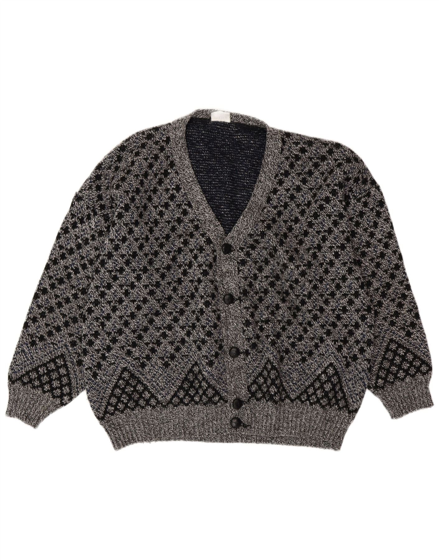 Maglione cardigan da uomo VINTAGE XL lana geometrica grigia