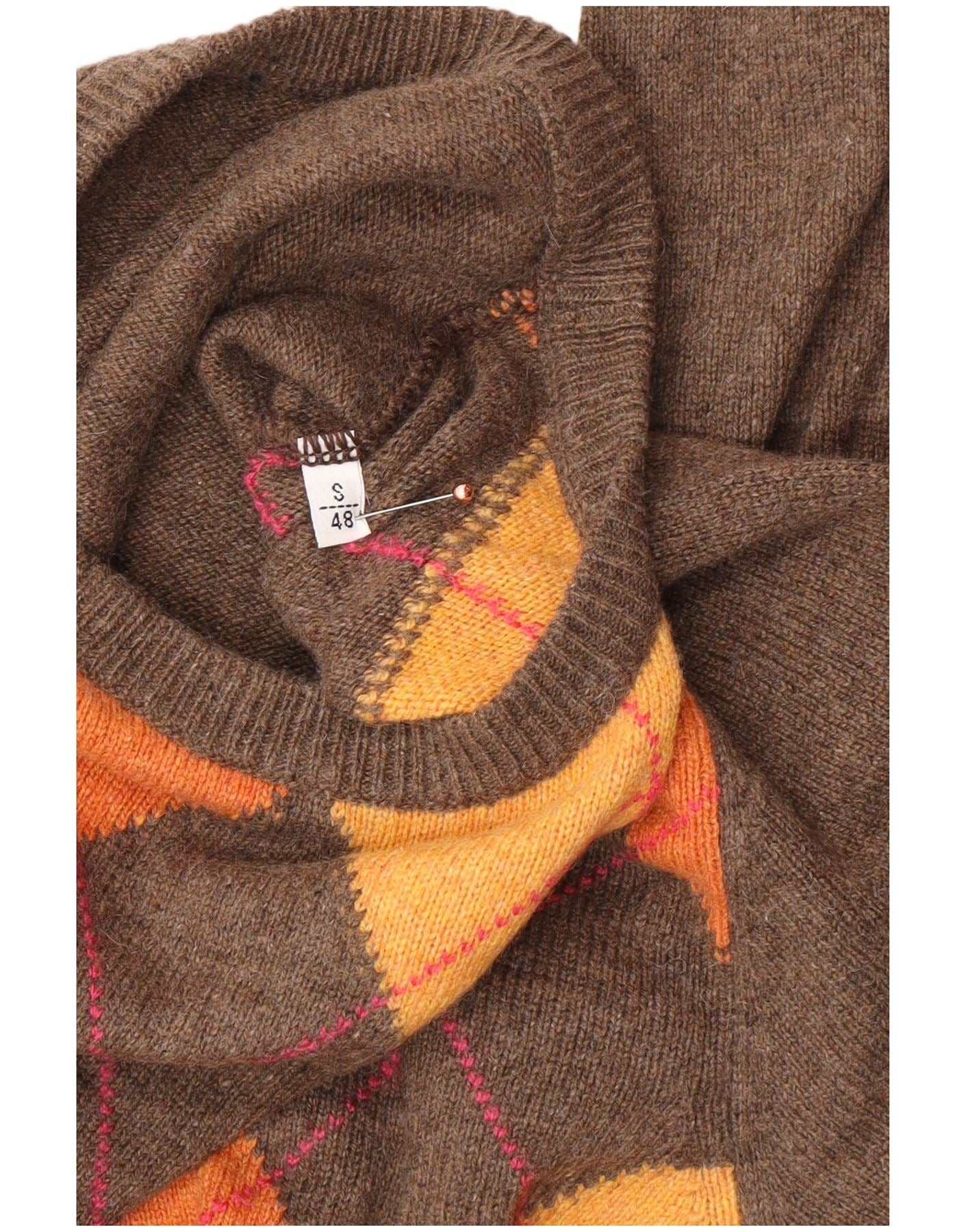 Maglione girocollo da uomo VINTAGE IT 48 piccolo marrone a rombi/diamante