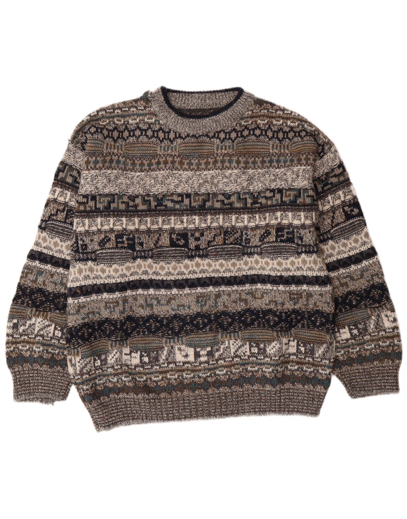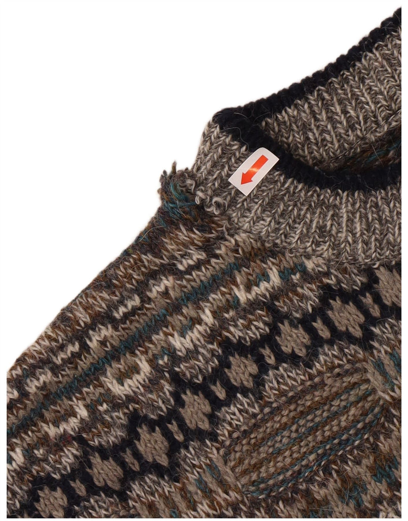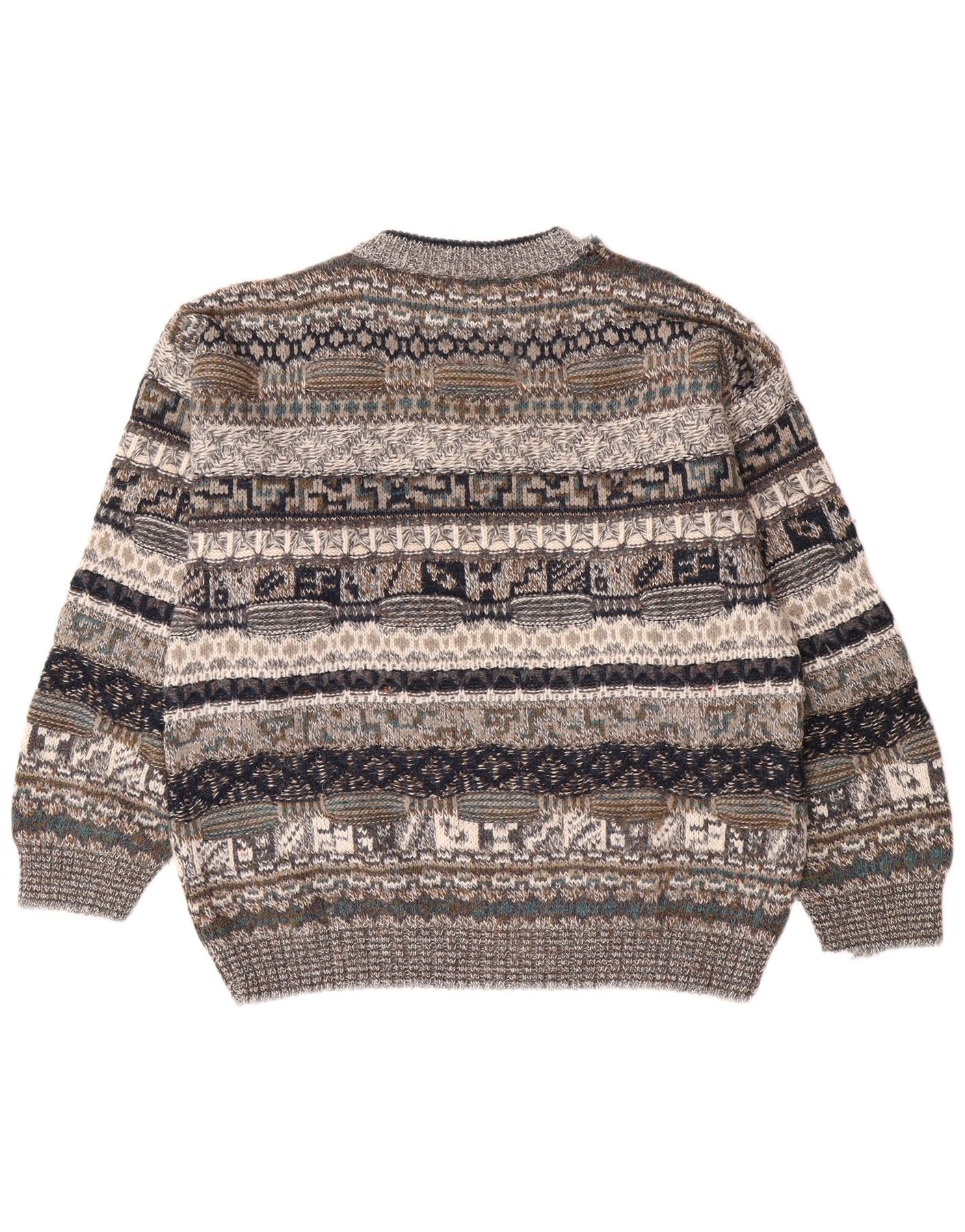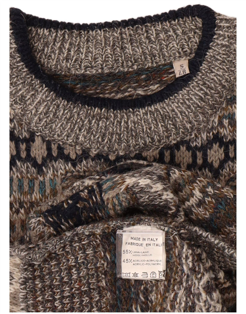 Maglione maglione girocollo da uomo VINTAGE IT 48 piccolo lana geometrica grigia