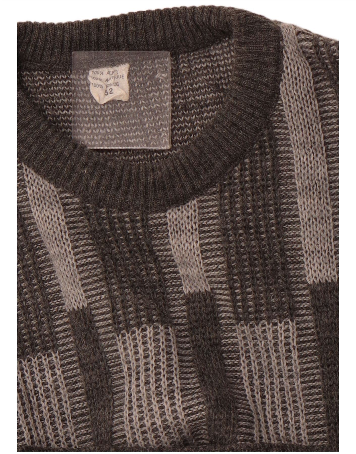 Maglione girocollo da uomo VINTAGE IT 52 Grande acrilico geometrico grigio