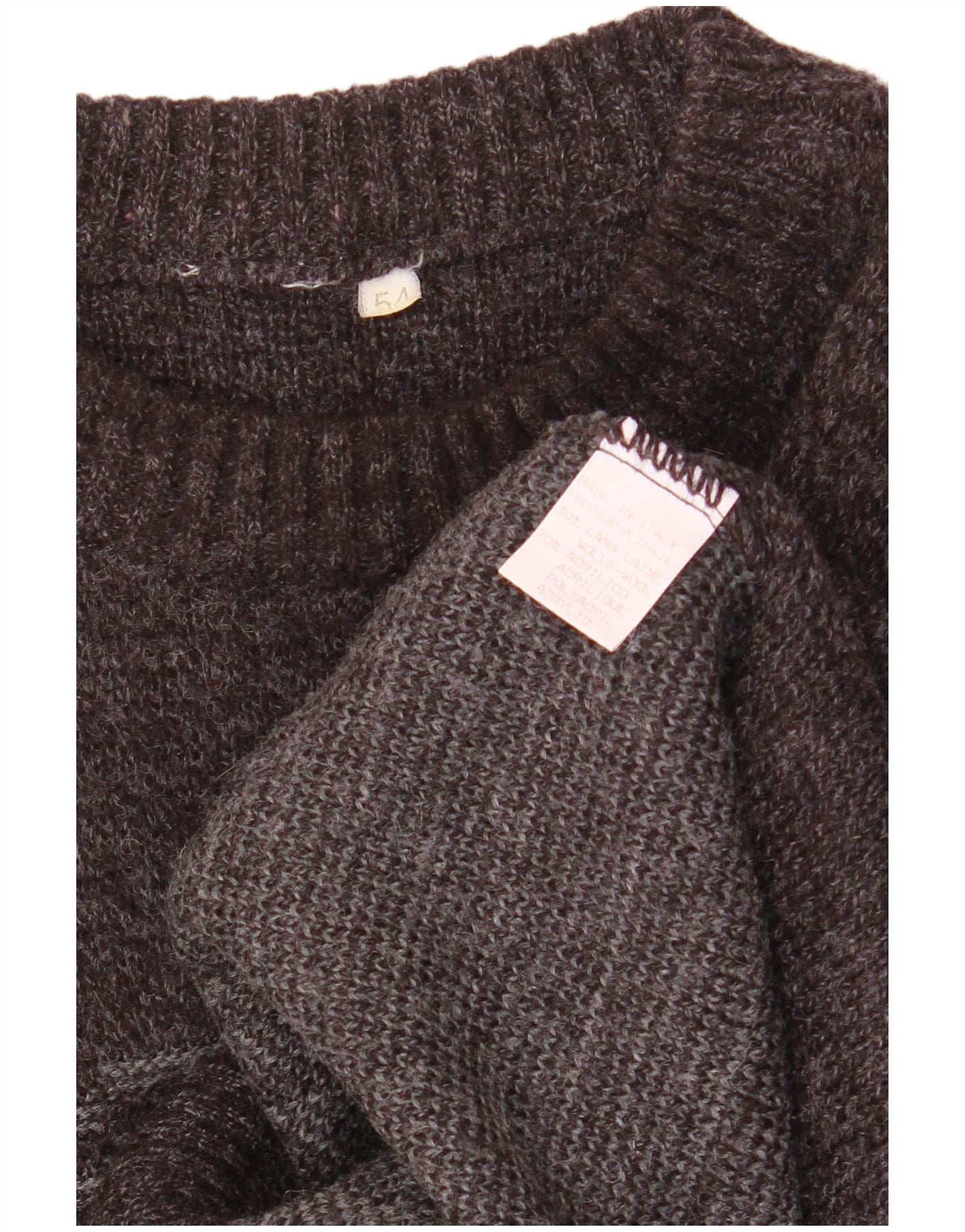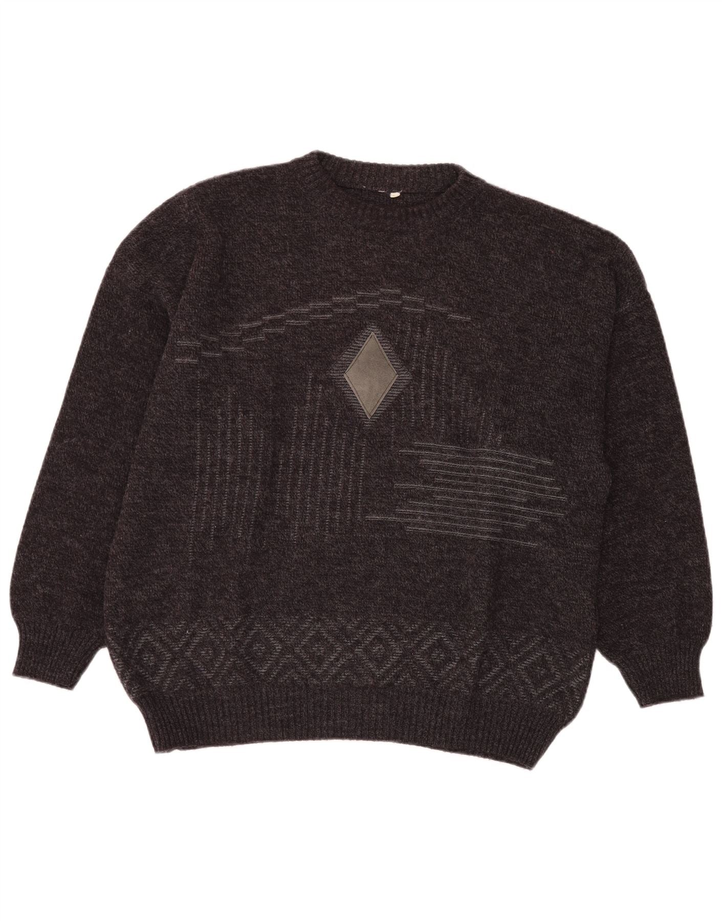 Maglione maglione girocollo da uomo VINTAGE IT 54 XL lana Fair Isle grigia