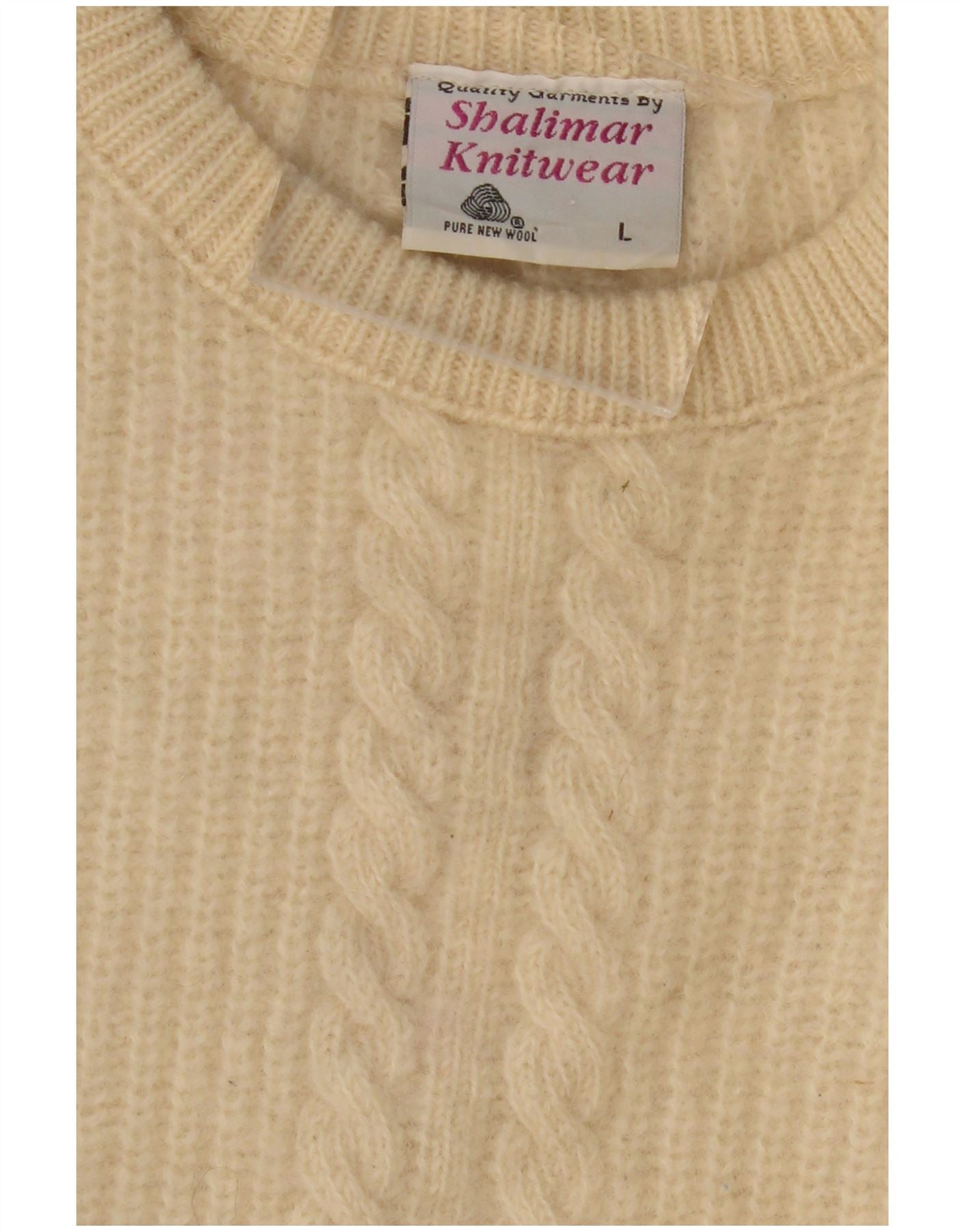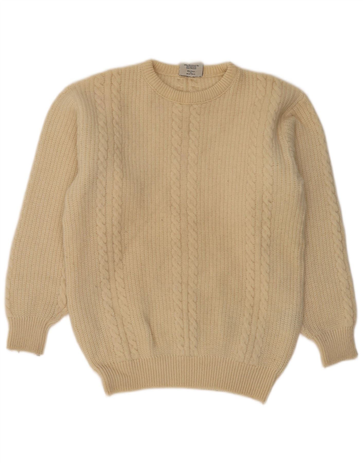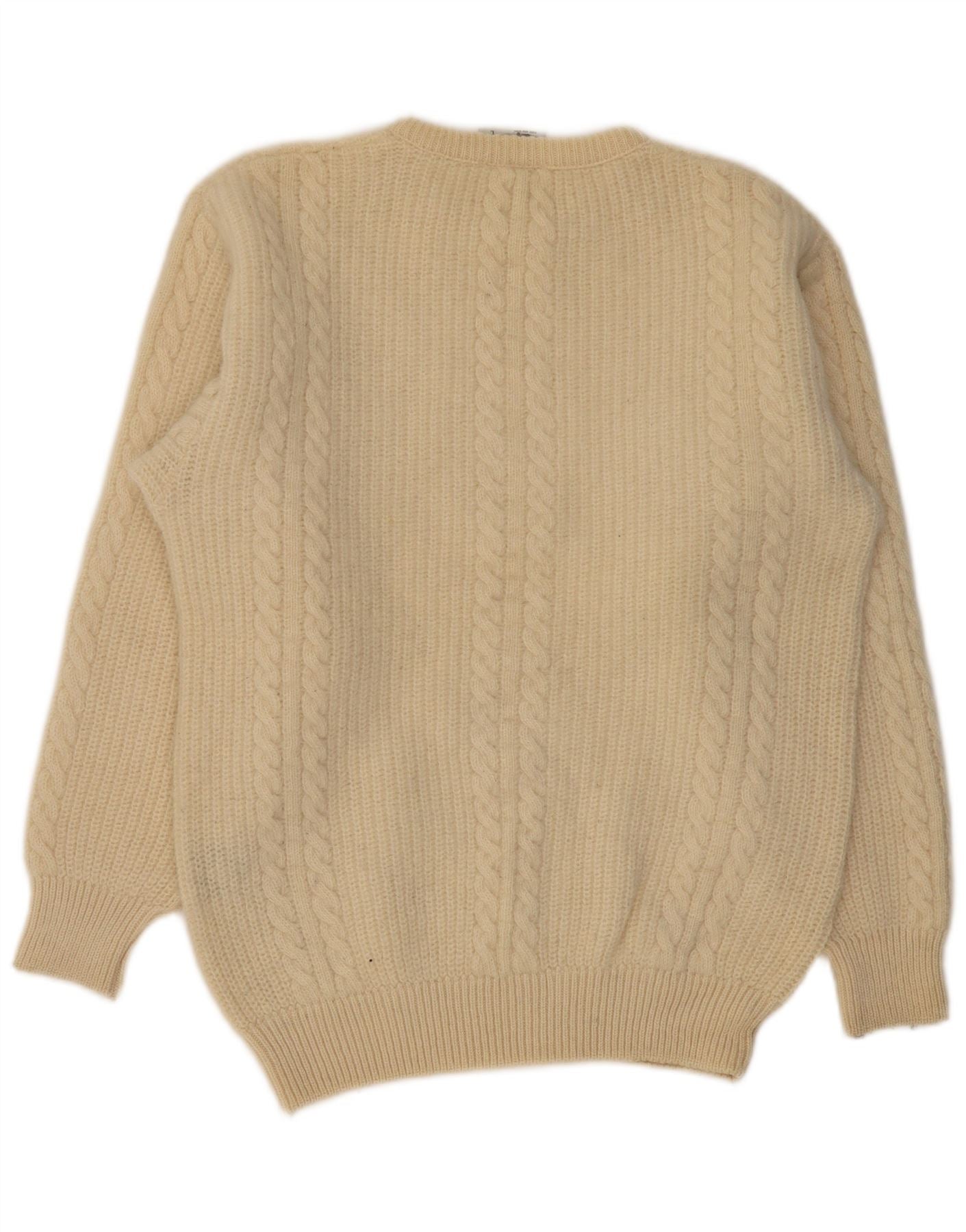 Maglione maglione girocollo da uomo VINTAGE grande lana vergine beige