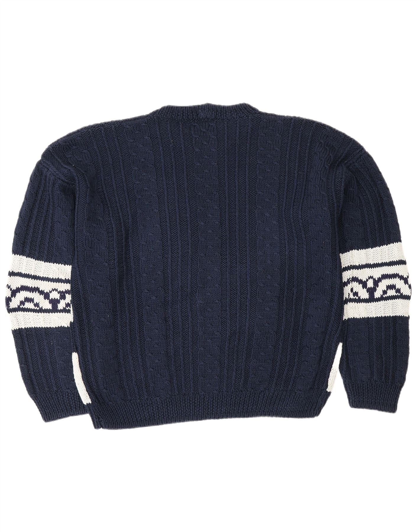Maglione maglione girocollo vintage da uomo grande Fair Isle blu navy