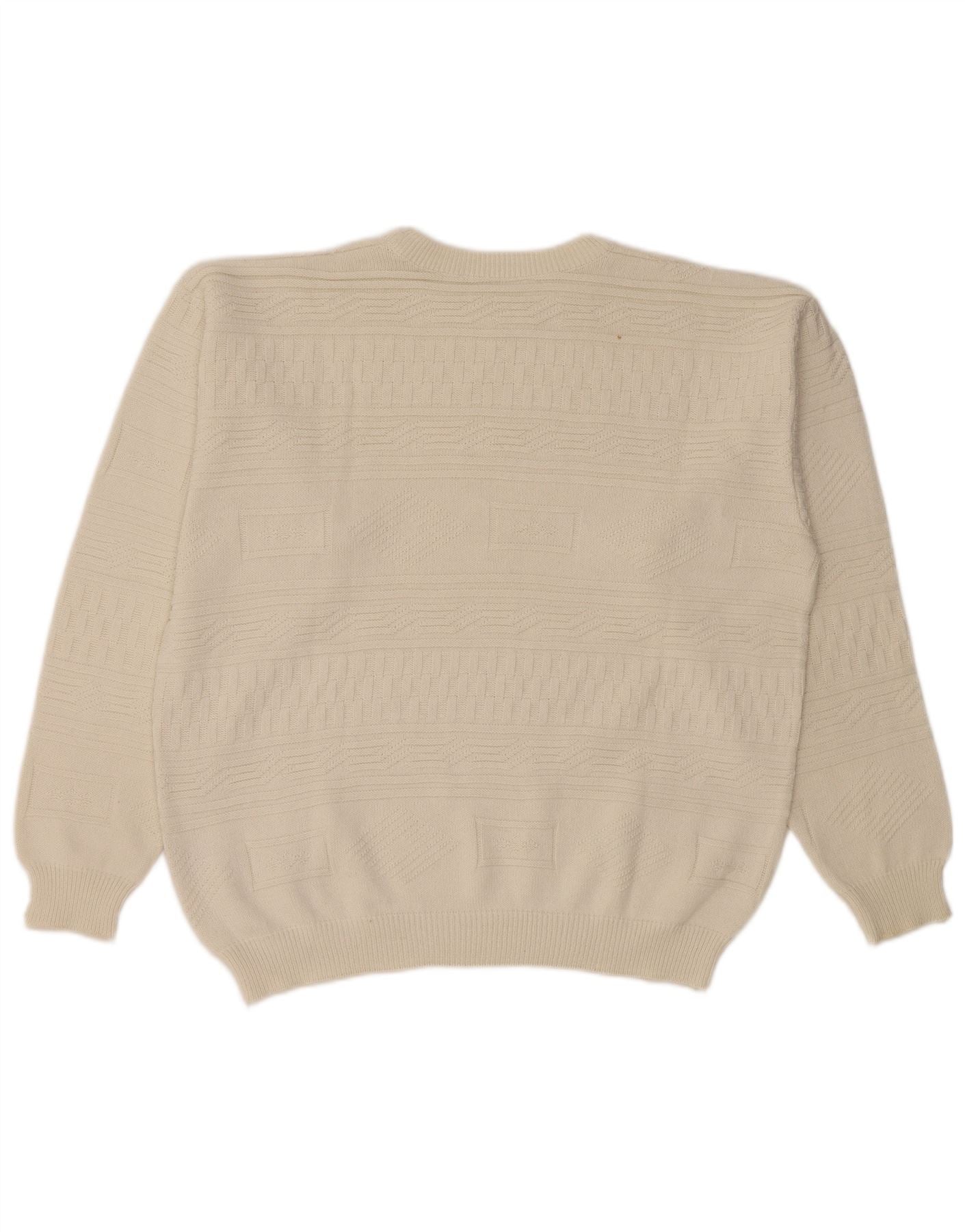 Maglione girocollo da uomo VINTAGE grande cotone geometrico bianco