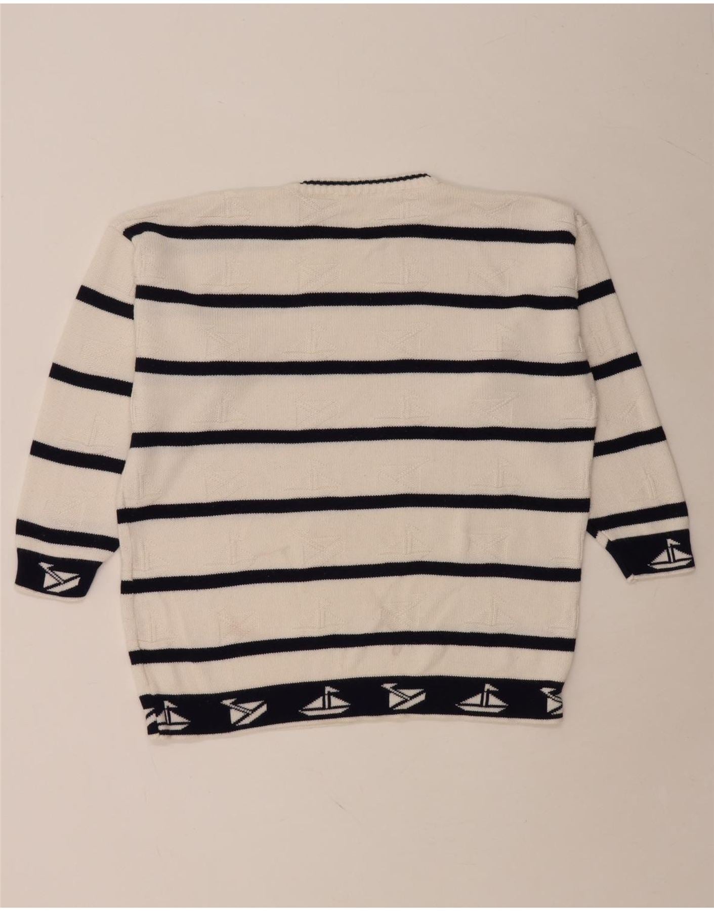 VINTAGE Maglione girocollo da uomo a righe grandi bianche