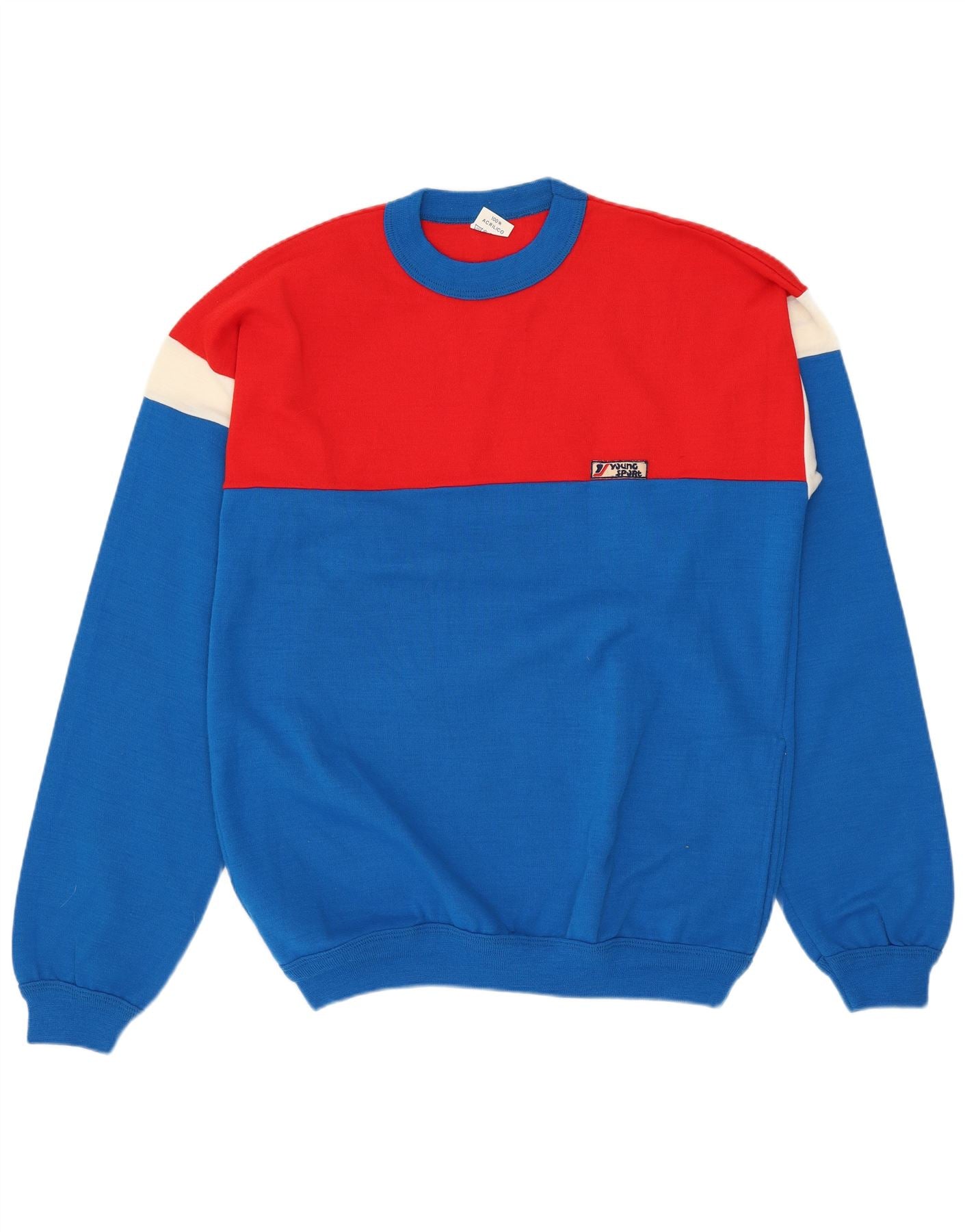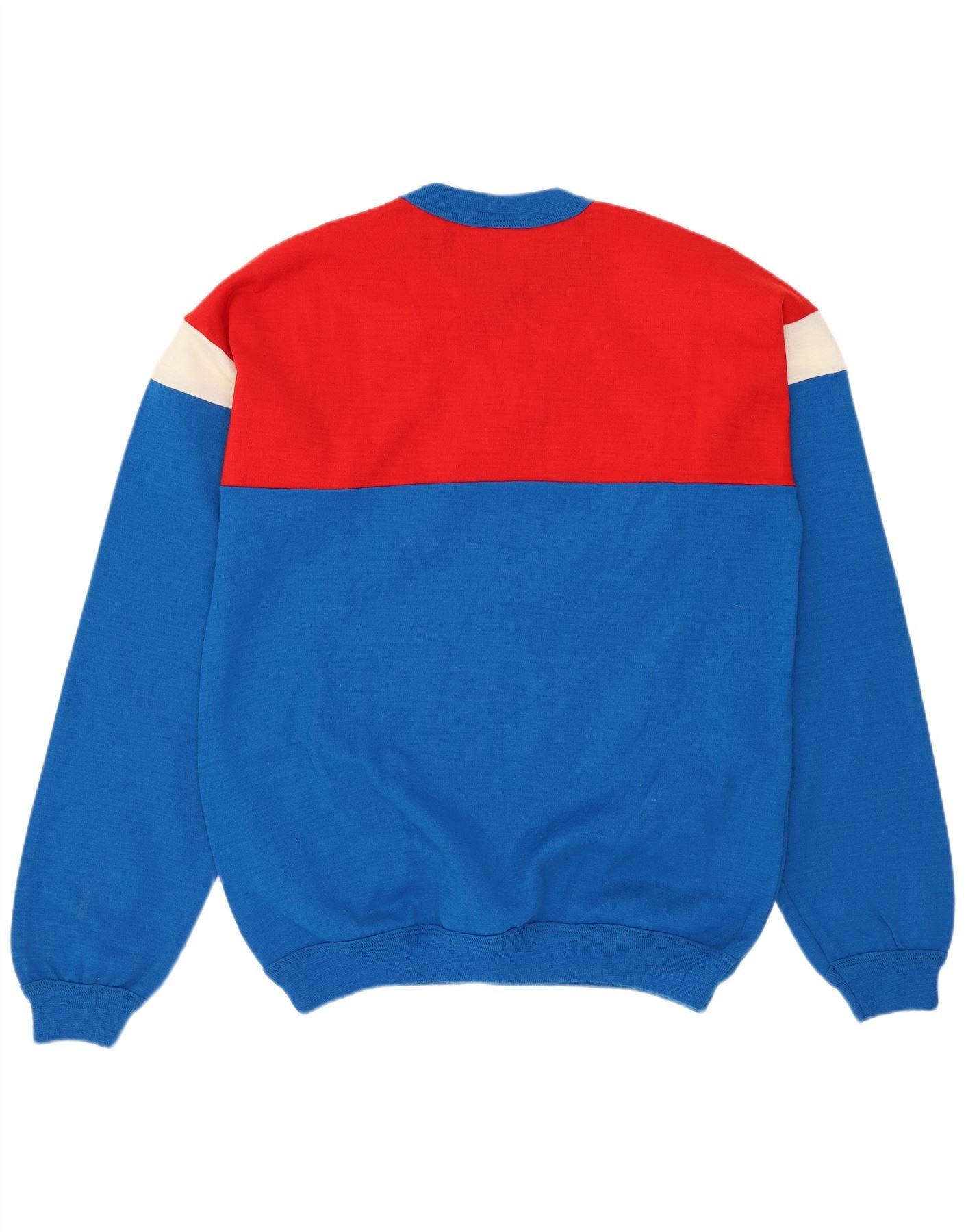 Maglione maglione girocollo da uomo VINTAGE blu medio in acrilico color block