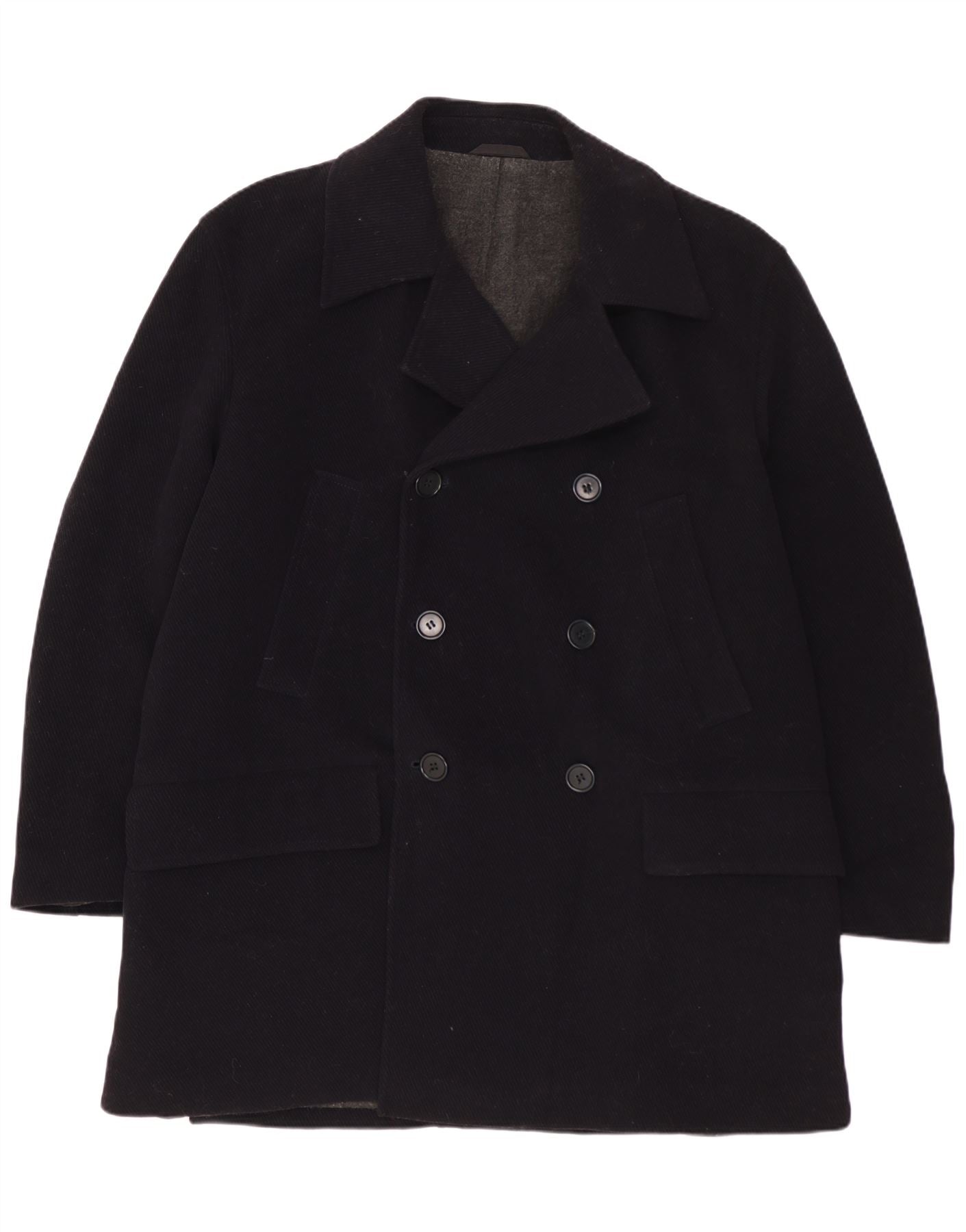 Cappotto doppiopetto da uomo VINTAGE IT 50 Large in lana blu navy