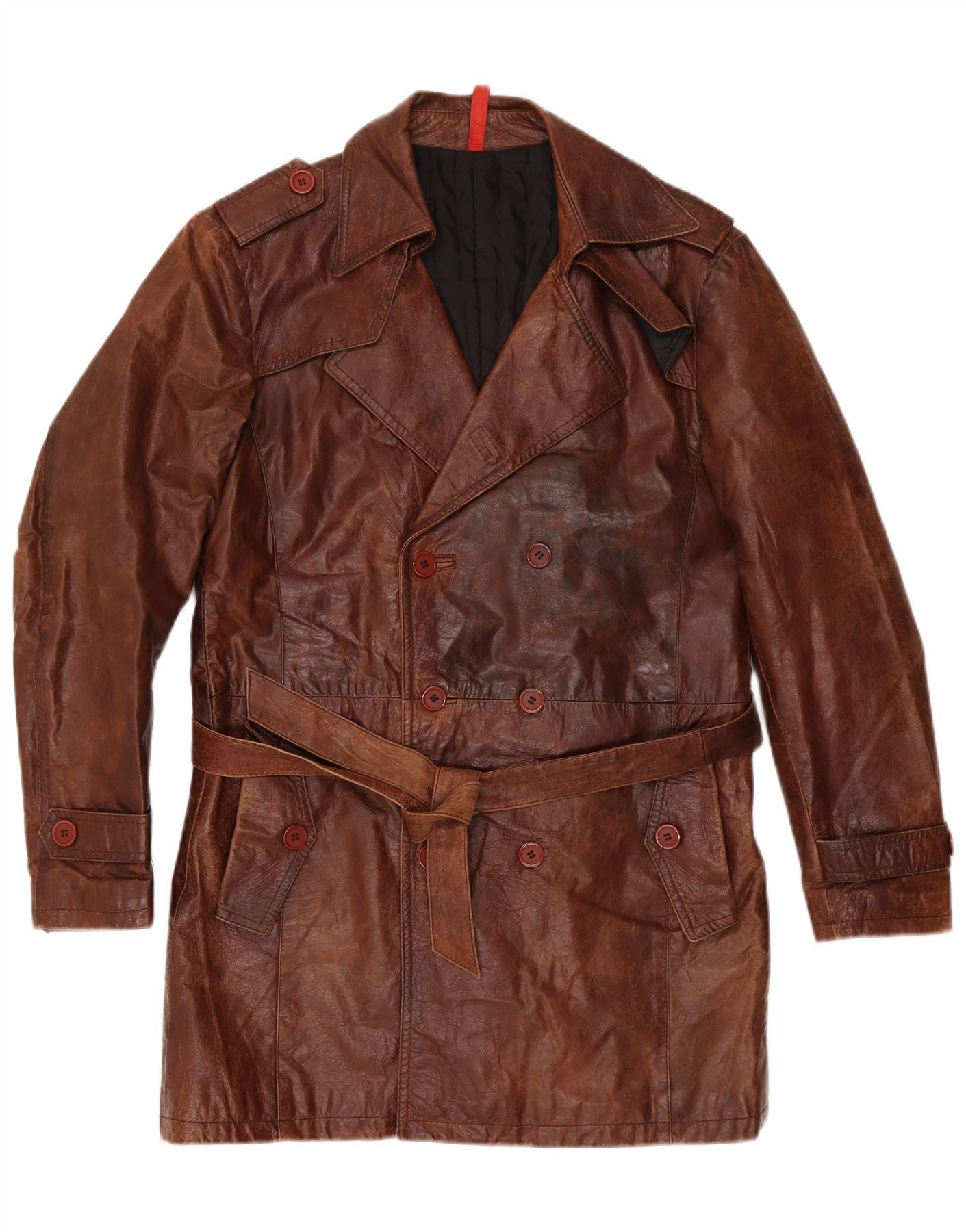 Cappotto in pelle militare doppiopetto da uomo VINTAGE IT 50 Large Marrone