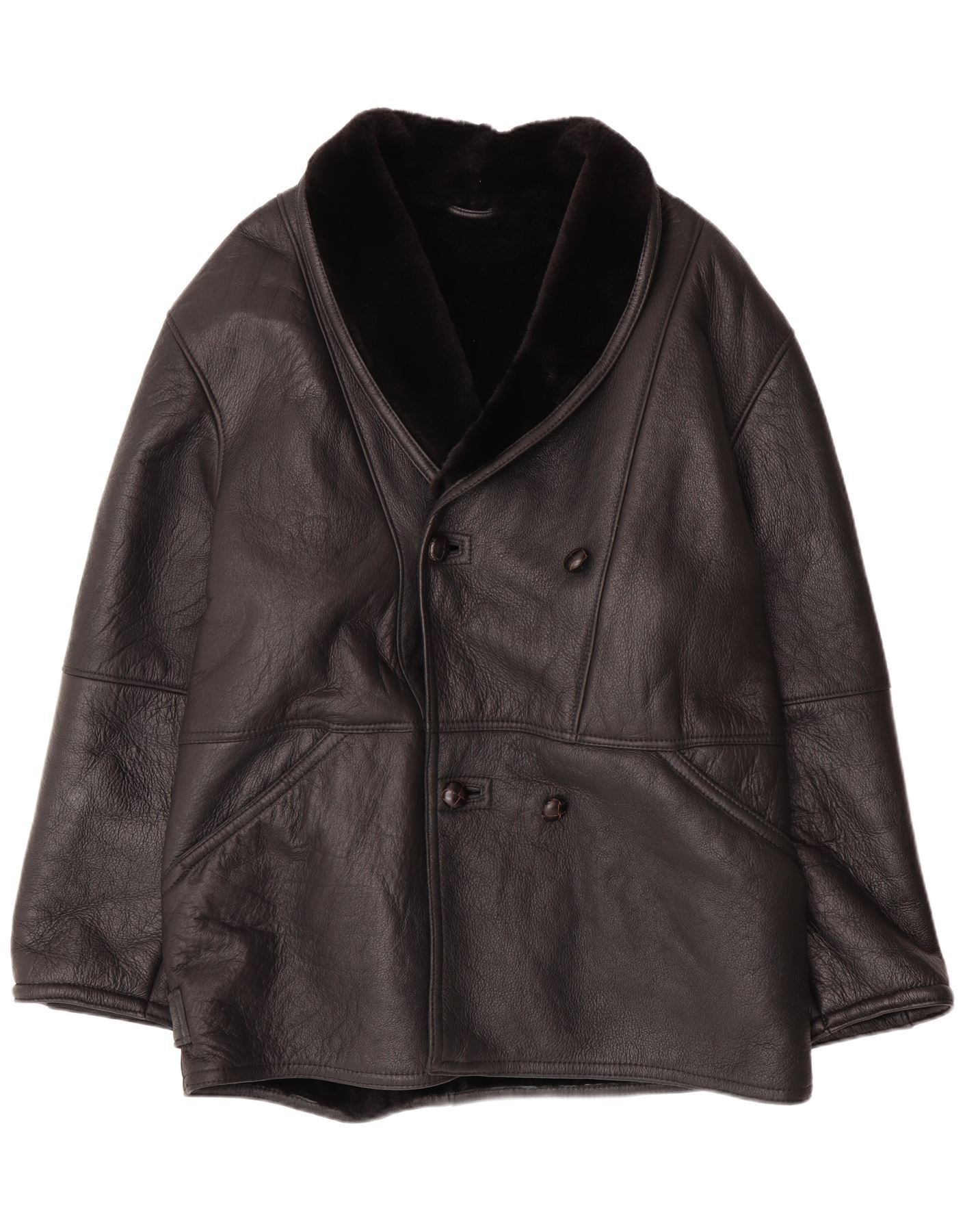 Giacca in shearling doppiopetto da uomo VINTAGE IT 58 4XL Shearling nero