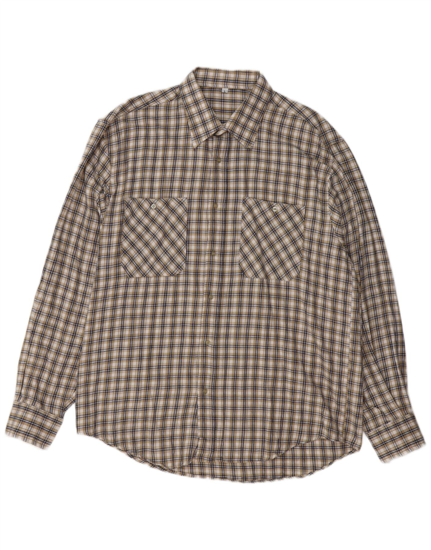 VINTAGE Camicia da uomo in flanella di cotone a quadri beige grande