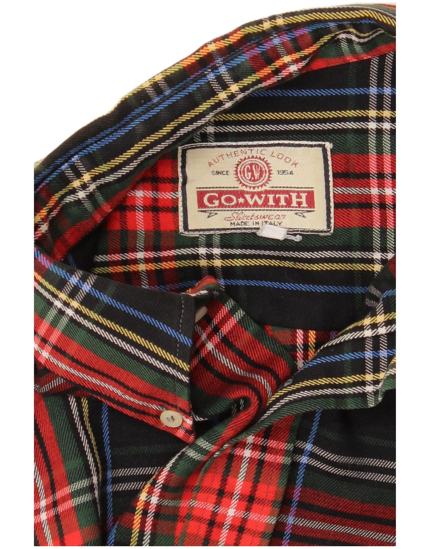 - Descrizione dell'IA: Questa camicia di flanella da uomo vintage è realizzata in morbida flanella intrecciata. Presenta un classico motivo scozzese in nero, rosso e verde. Lo scollo con colletto e l'intera abbottonatura sul davanti offrono un look senza tempo. Finitura maniche lunghe con polsini con bottoni. Una singola tasca sul petto aggiunge dettagli pratici. La vestibilità regolare garantisce una vestibilità comoda.
