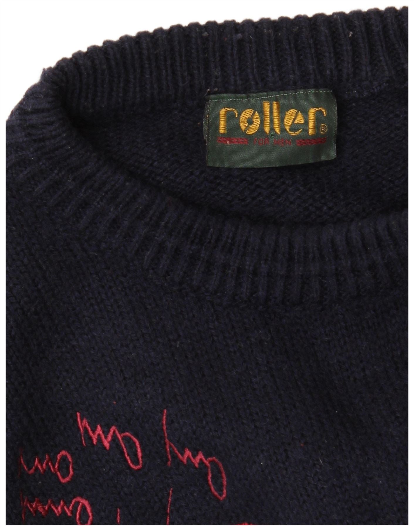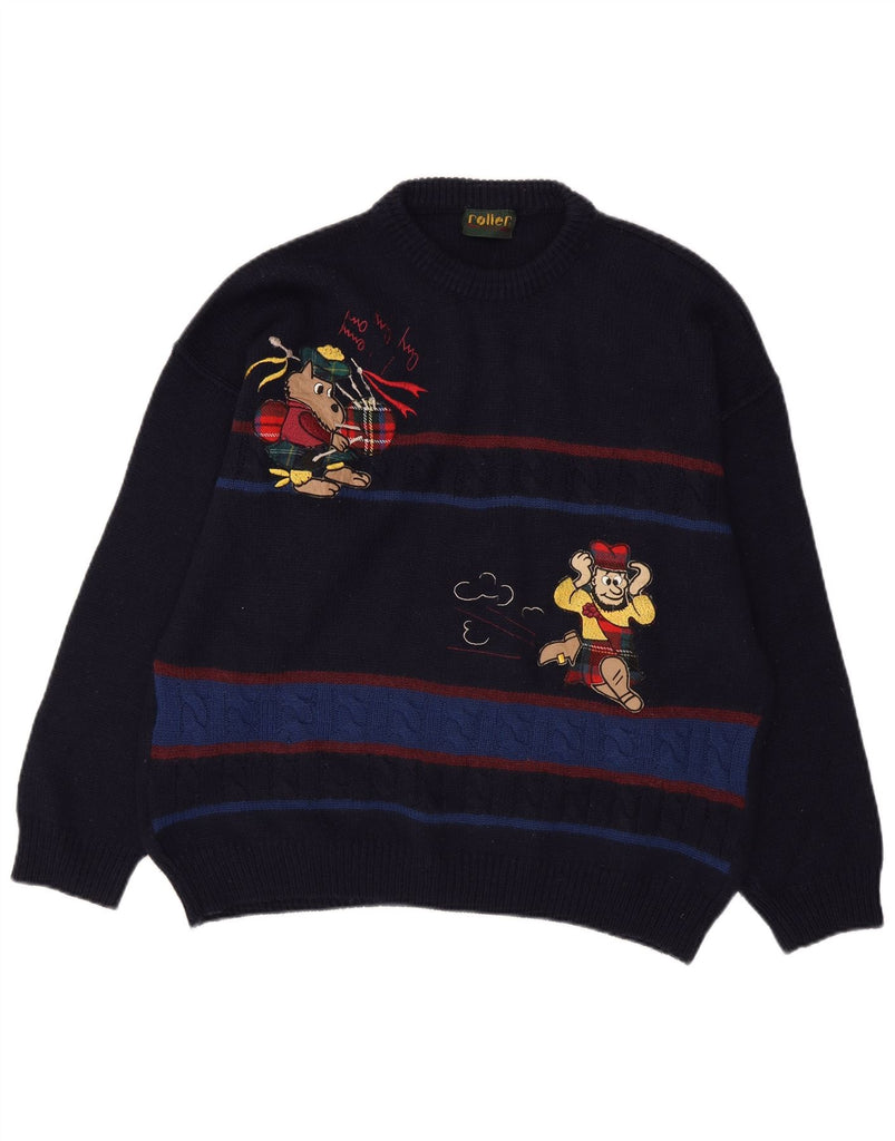 Maglione maglione girocollo con grafica da uomo VINTAGE grande blu navy