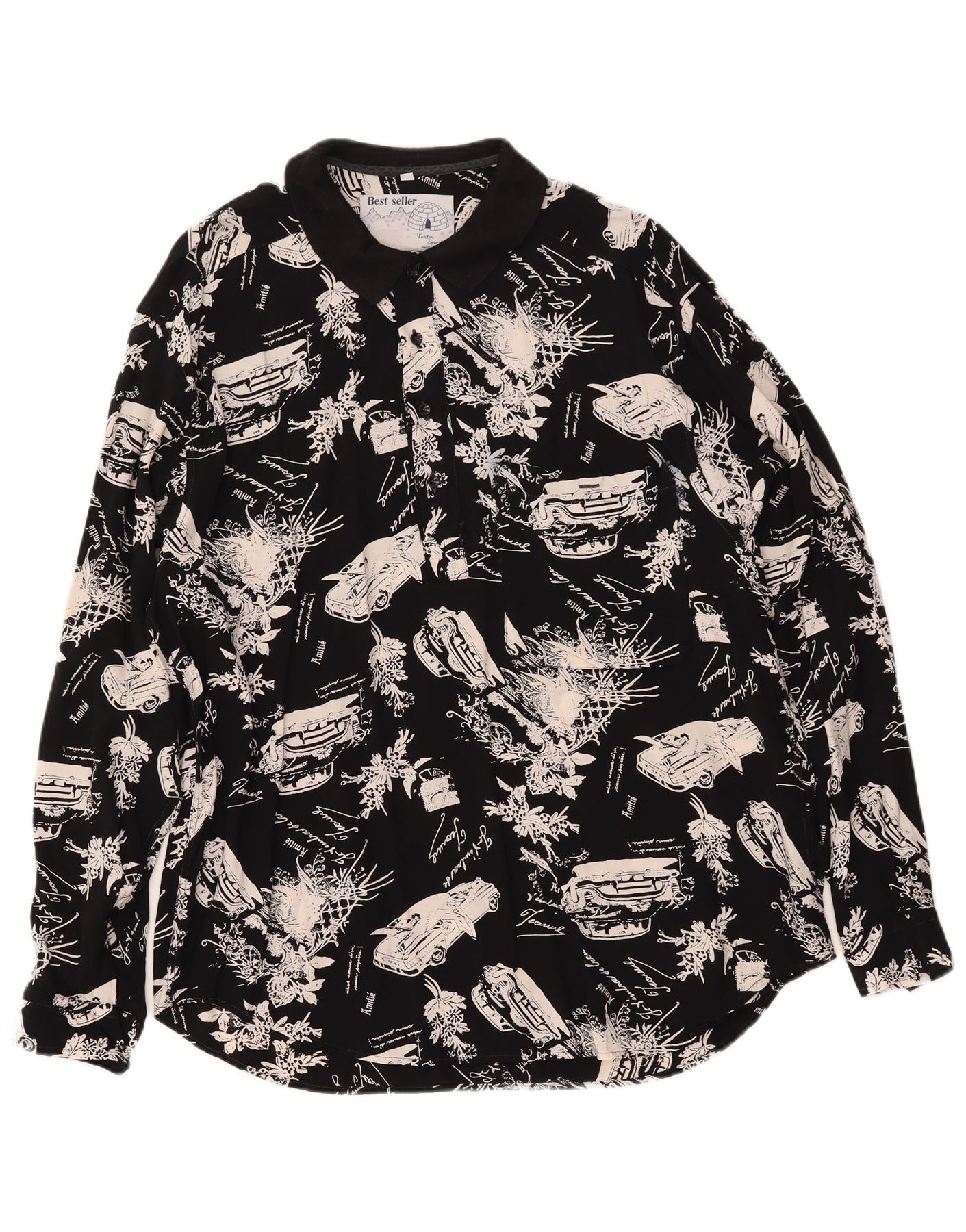 Camicia pullover grafica da uomo VINTAGE nera media