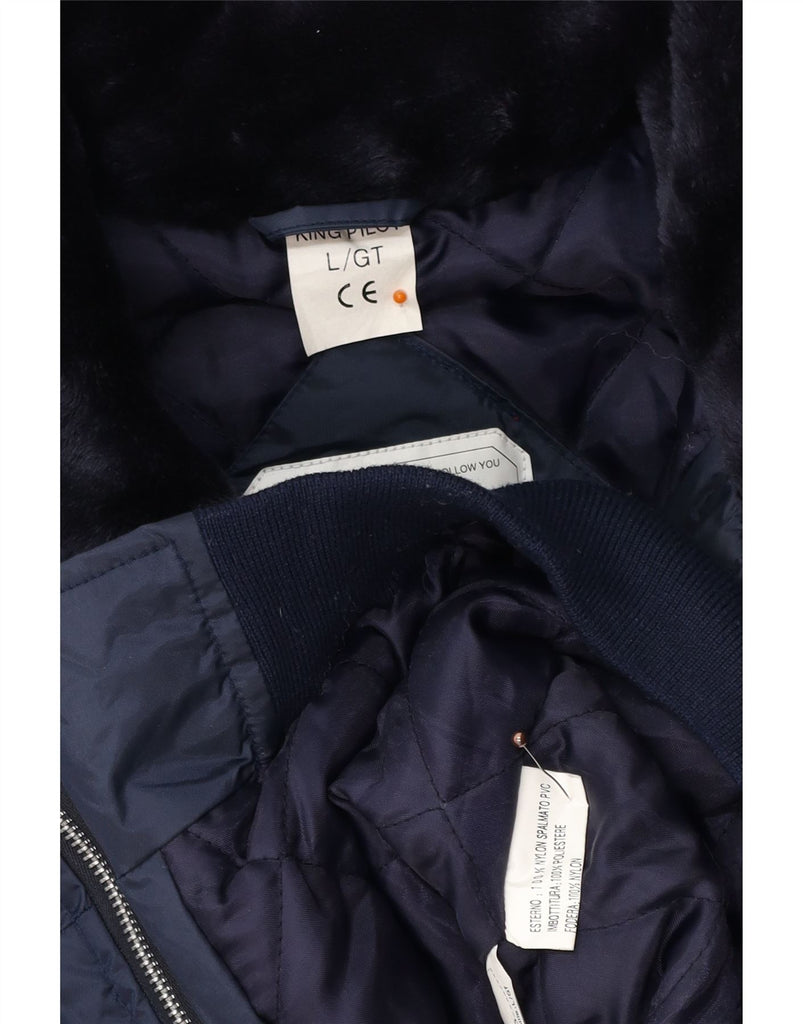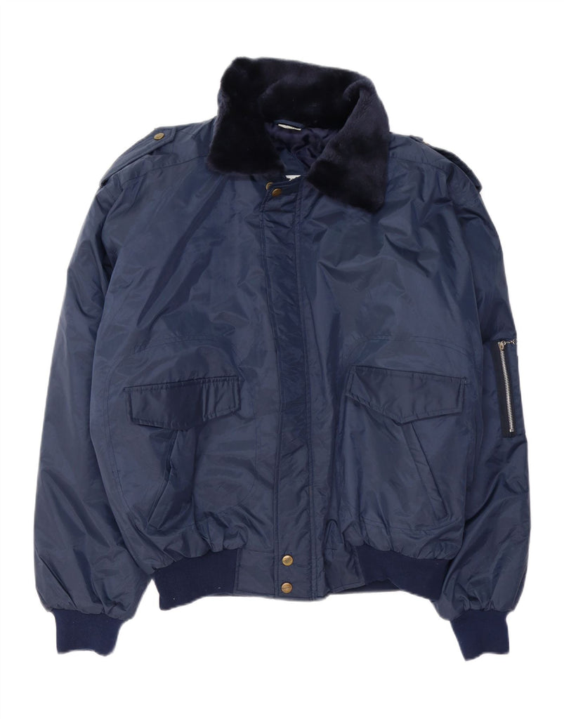 Giubbotto bomber militare con cappuccio da uomo VINTAGE UK 40 grande nylon blu navy