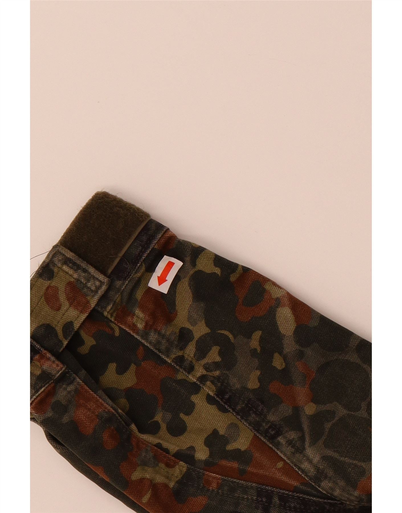 • AI Description: This Vintage men's army jacket features a camouflage pattern on woven fabric. The regular fit military style jacket has a collared neckline and long sleeves. It fastens with a snap closure and includes practical pockets. The hooded design adds extra protection. A great casual jacket.